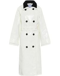 Parka Larga Muy Brillante Con Adorno De Piel Sintética - Blanco