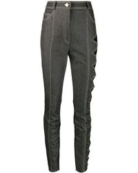 Vaqueros de talle alto con detalle floral - Negro