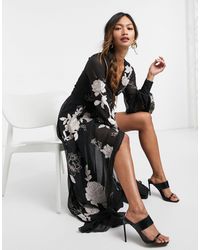 Vestido largo con mangas tipo kimono y estampado floral extragrande - Multicolor