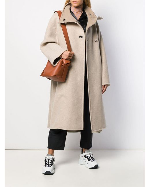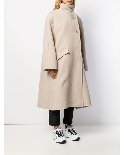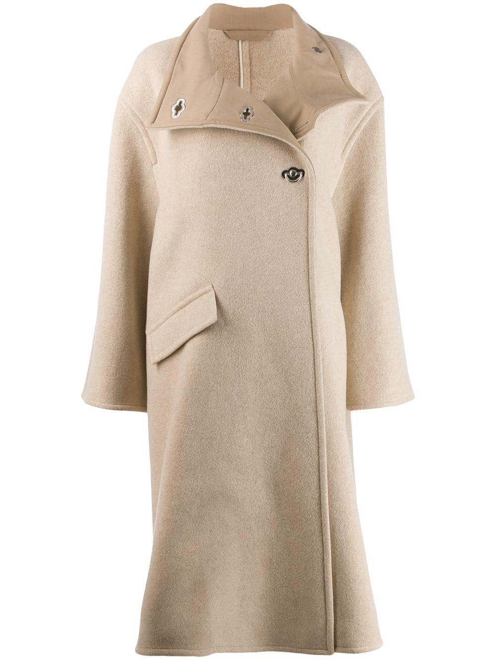 Abrigo acampanado cruzado de color beige de Acne Studios con cuello alzado y manga larga. Material:algodón/nylon/lana. Color: neutro