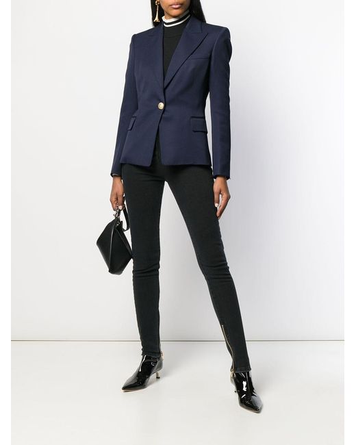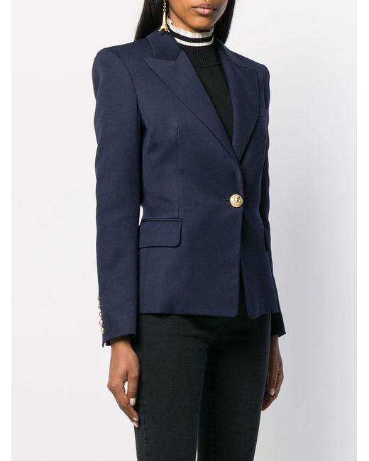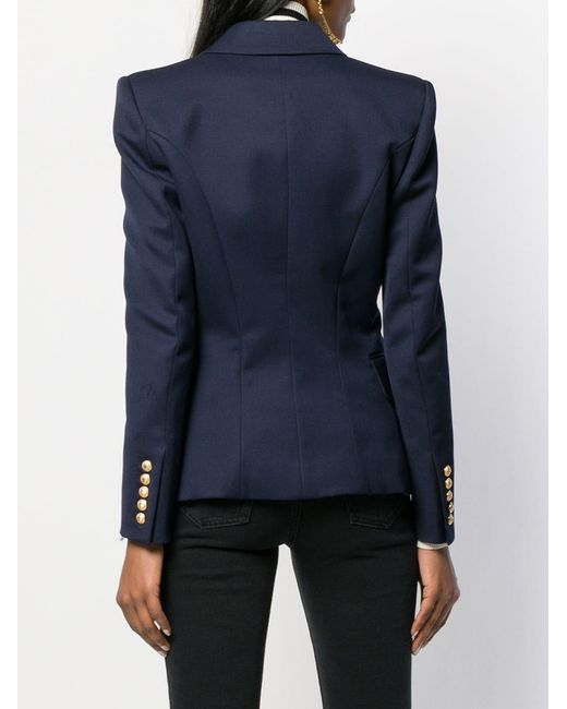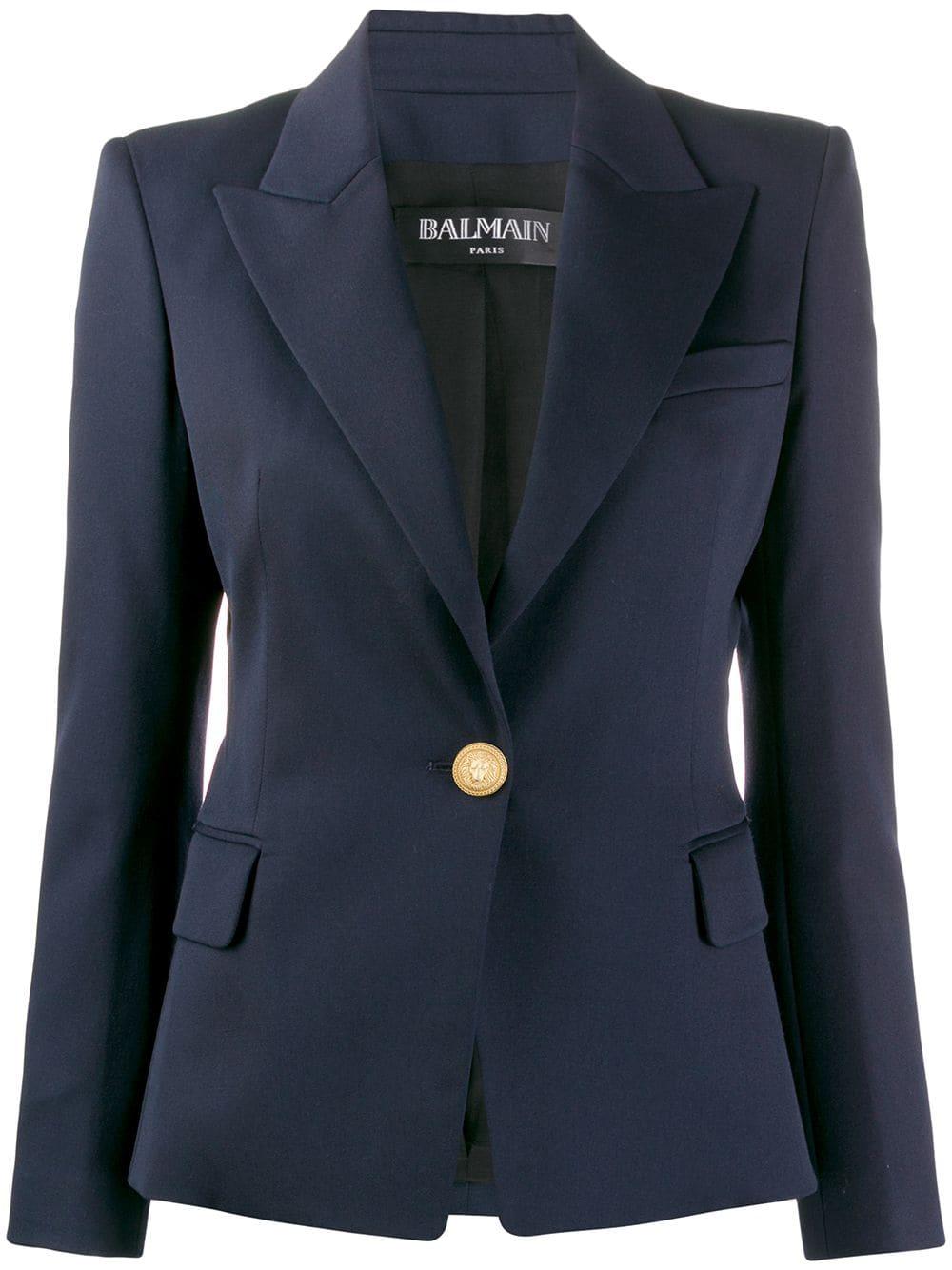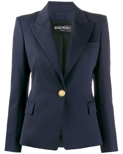 Blazer de vestir con botones en lana de color azul de Balmain con solapa de muesca, bolsillo en el pecho, cierre con botones en la parte delantera, manga larga y bolsillos con solapa en el frente. Material:Viscosa/algodón/lana virgen. Color: azul
