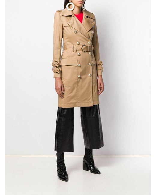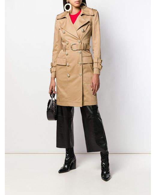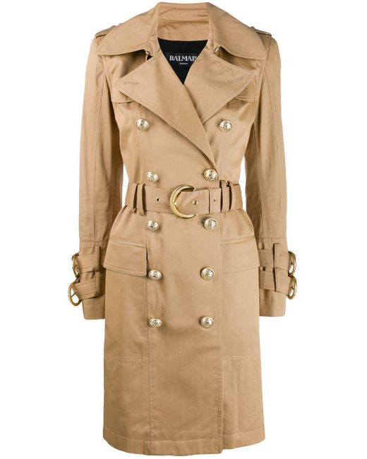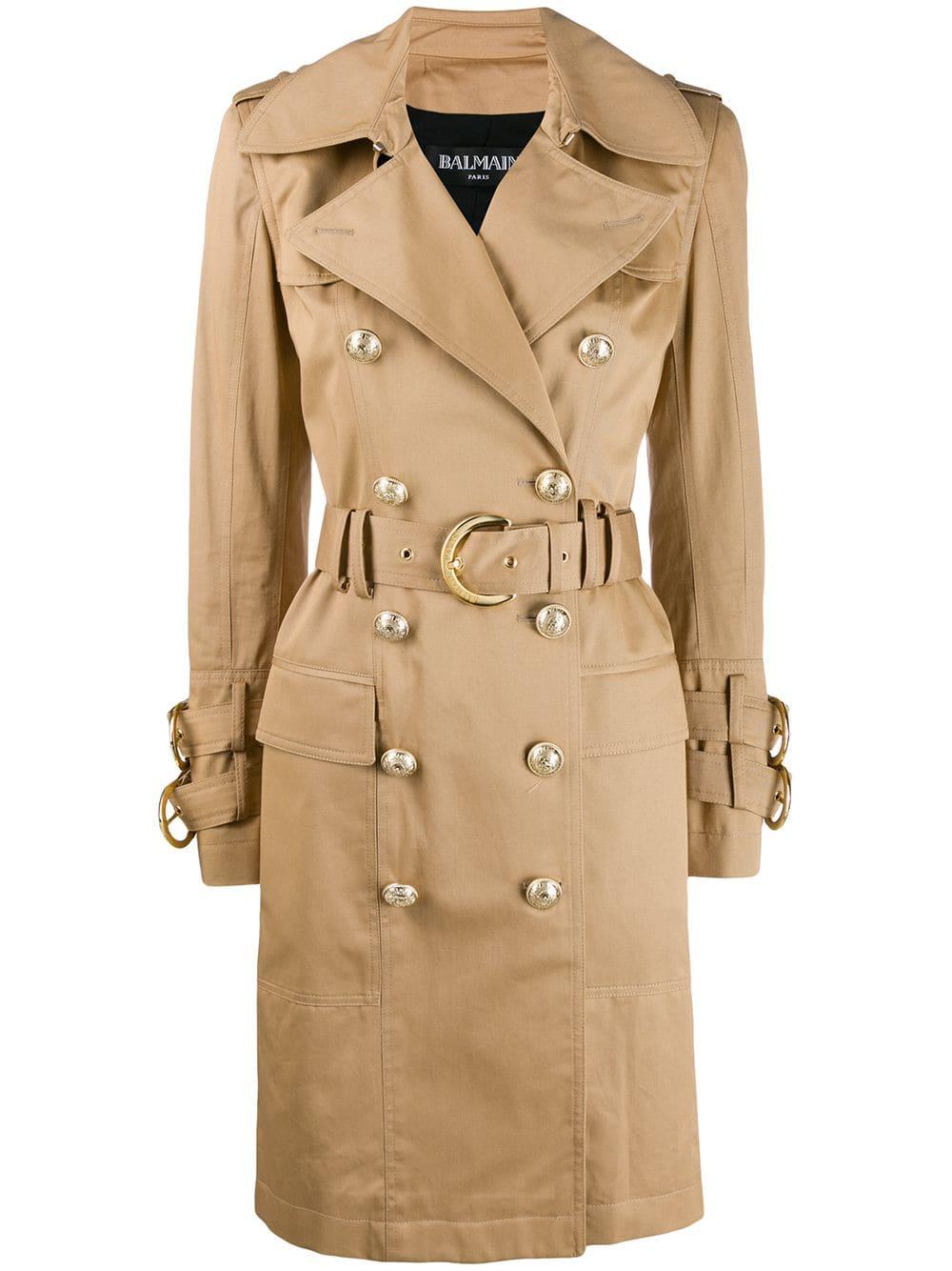 Gabardina con cinturón en mezcla de algodón de Balmain con solapa de muesca, trabillas en los hombros, cierre descentrado con botones en el frente, bolsillos en la parte frontal, abertura en la parte posterior, solapa cortaviento, manga larga y puños con botones falsos. Material:algodón/Viscosa. Color: neutro