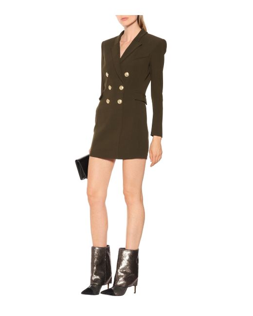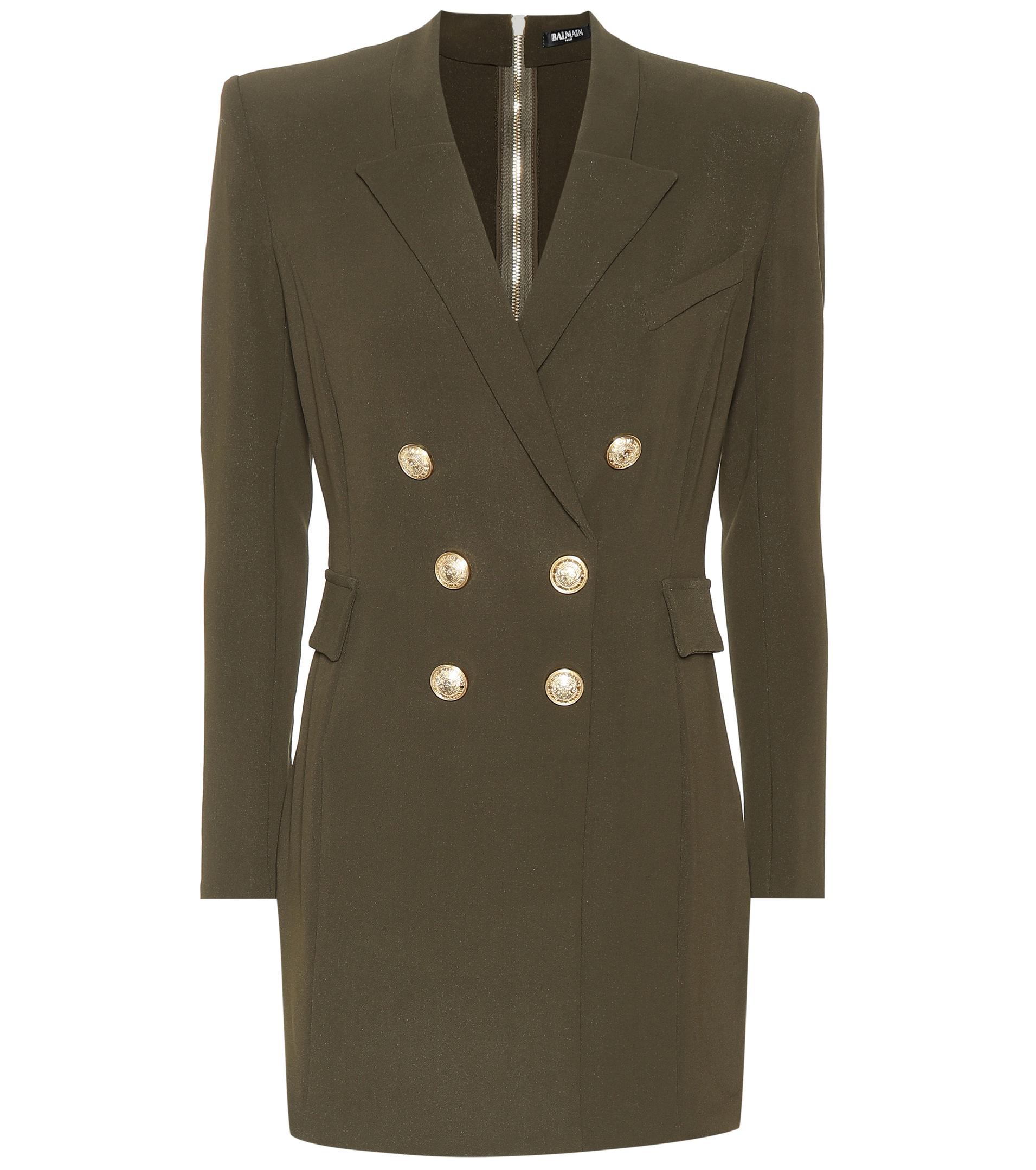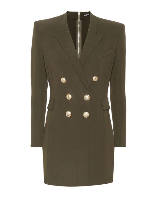 Balmain actualiza el característico blazer de la firma en este vestido corto de estilo militar-chic: un diseño para ir al mando de las tendencias. Color: verde
