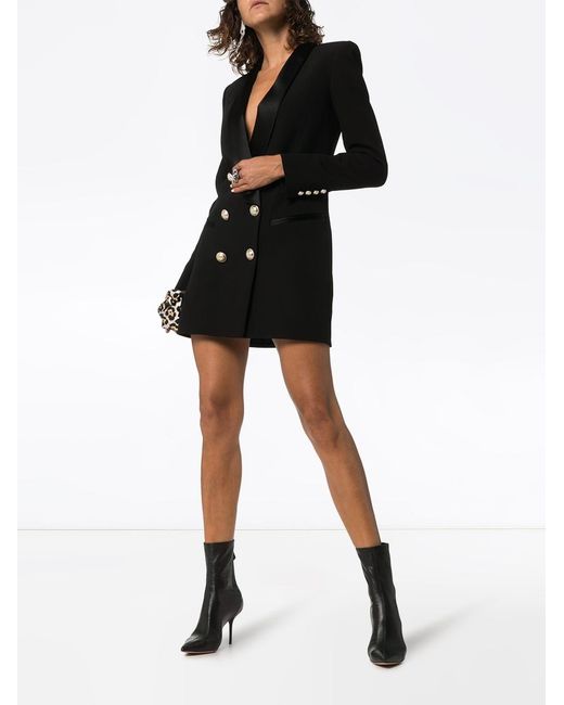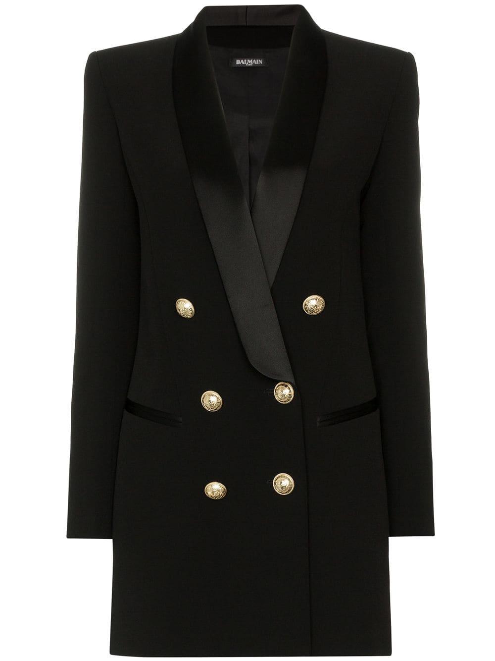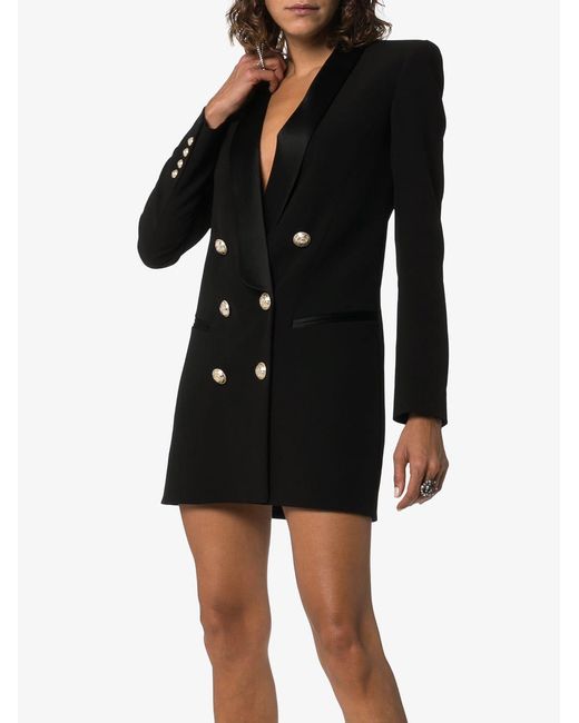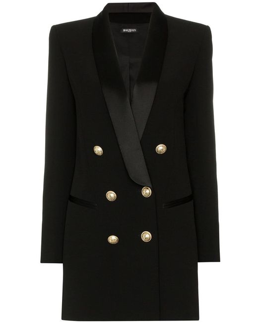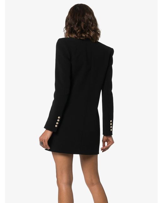 Vestido con diseño de blazer y doble botonadura en mezcla de algodón de color negro de Balmain con manga larga y dos bolsillos en la parte frontal. Material:Viscosa/algodón/acetato. Color: negro