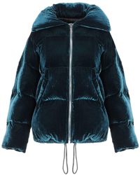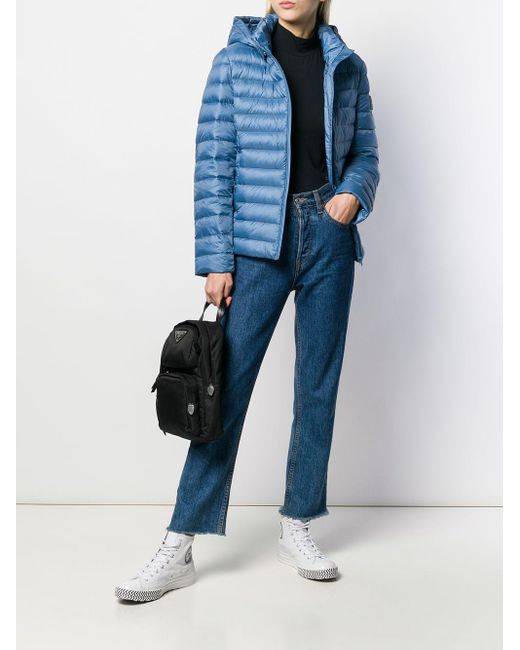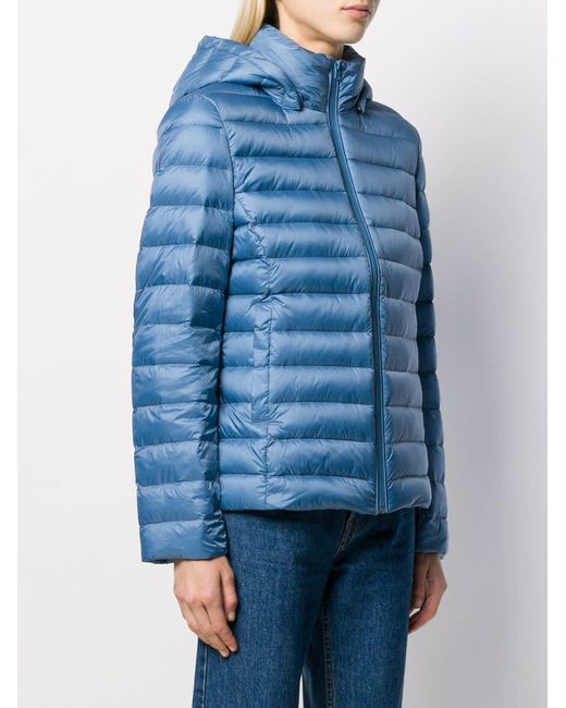 Chaqueta acolchada con capucha de mujer de color azul