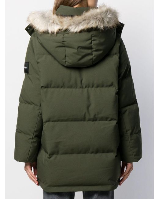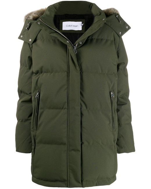 Chaqueta con capucha de Calvin Klein con capucha con borde en pelo artificial, cierre con cremallera en la parte delantera, manga larga, bolsillos con cremallera en la parte delantera, ajuste oversize y interior con relleno. Material:poliéster. Color: verde