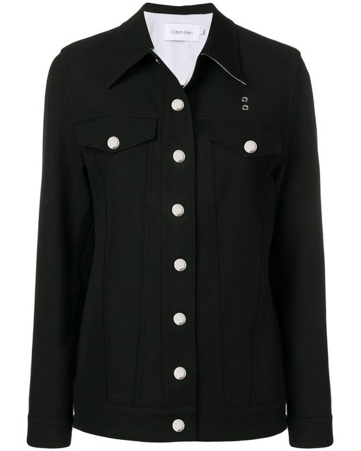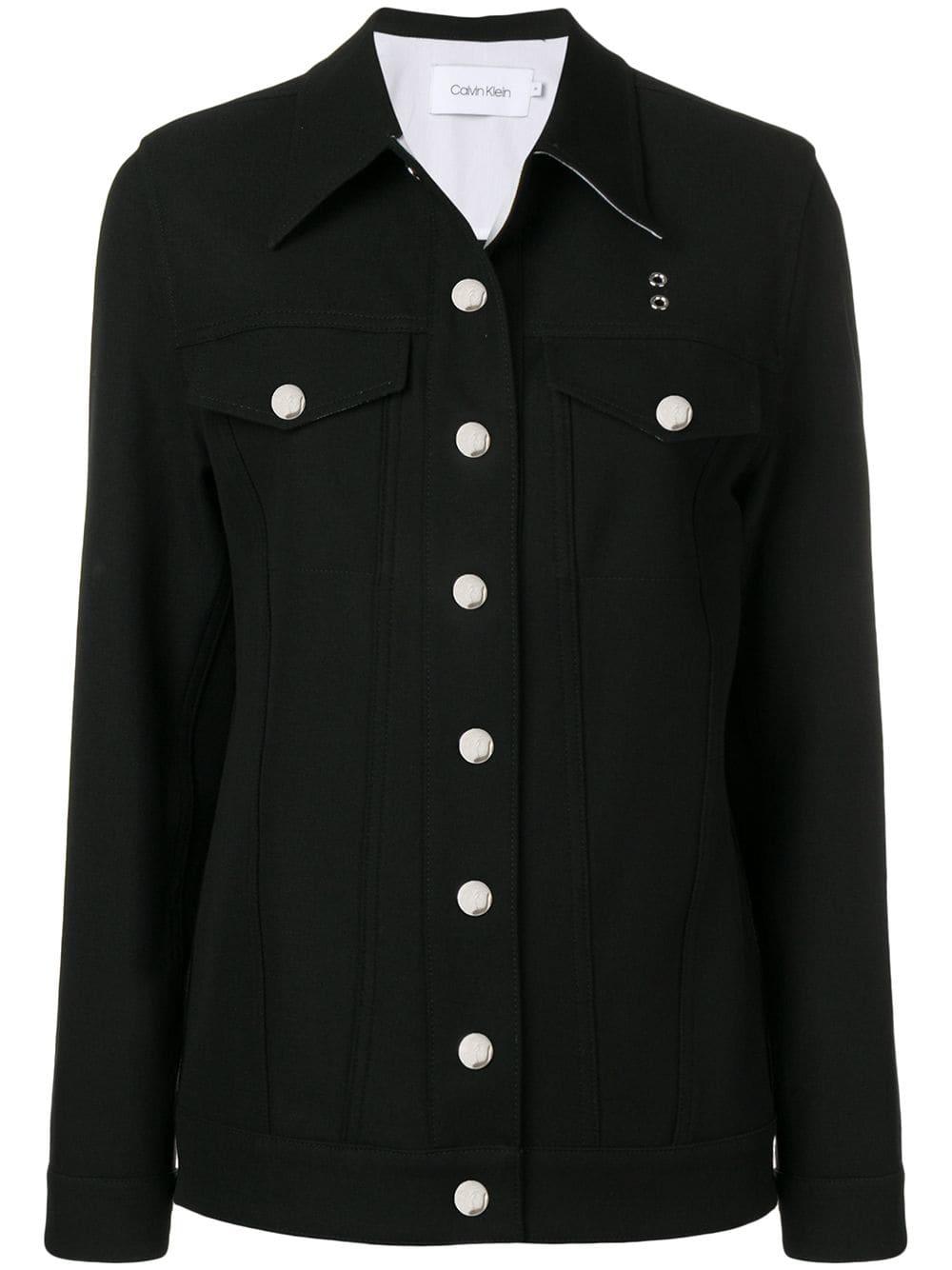 Chaqueta vaquera estructurada de Calvin Klein con cuello clásico, cierre con botones en la parte delantera, dos bolsillos en el pecho, paneles pespunteados, hombros estructurados, manga larga y puños con botón. Material:algodón/poliamida/spandex/elastano. Color: negro