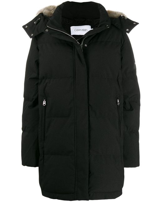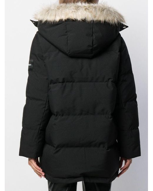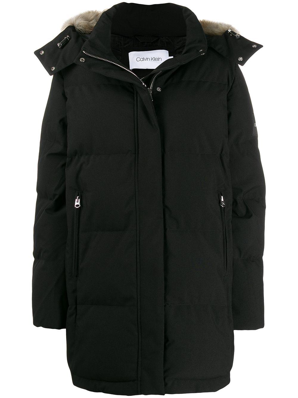 Chaqueta con capucha de color negro de Calvin Klein con capucha con borde en pelo artificial, cierre con cremallera en la parte delantera, manga larga, bolsillos con cremallera en la parte delantera y efecto acolchado. Material:poliéster. Color: negro