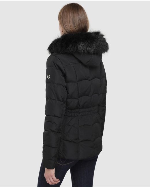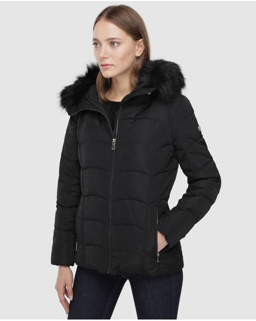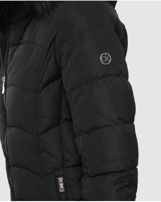 Calvin Klein Parka corta de mujer con capucha con pelo Parka corta en color liso con capucha de pelo sintético. Cierre de cremallera. Color: negro