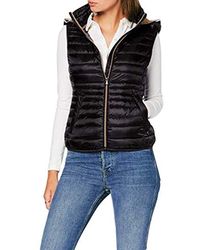 Tela técnica, logotipo, monocolor, abotonadura simple, cierre de cremallera, cuello alto, multibolsillos , sin mangas , interior en pluma de pato, composición con partes de origen animal pero no textil, chaqueta recta. 100% Poliéster, Piel de bovino. Color: negro