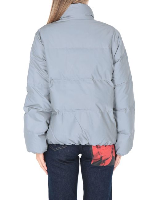 Tul. Logotipo. Monocolor. Abotonadura simple. Efecto tornasolado. Cierre con cremallera y automáticos. Cuello alto. Multibolsillos. Manga larga. Puños elásticos. Interior en pluma de pato. Composición con partes de origen animal pero no textil. Chaqueta recta. 100% Poliéster. Color: gris