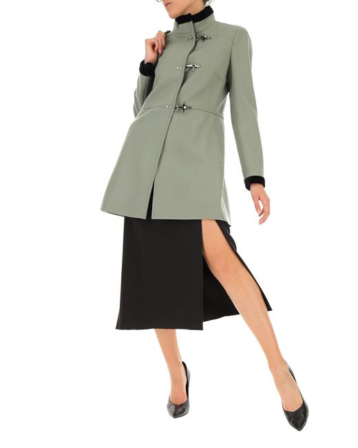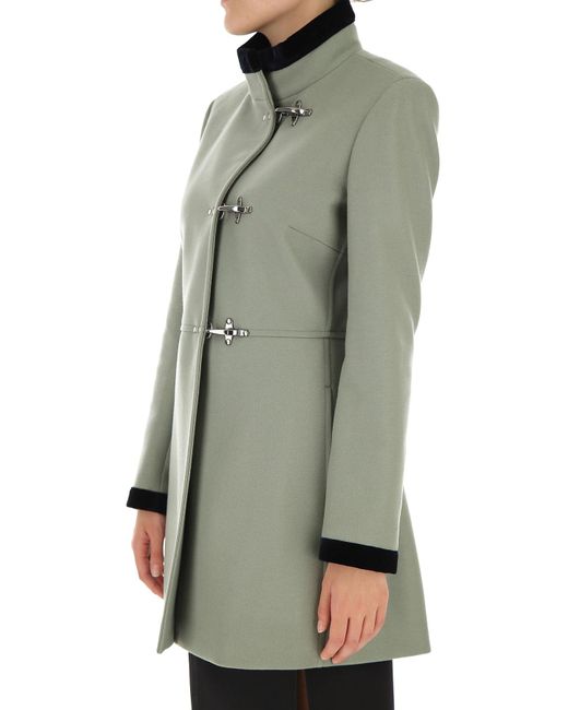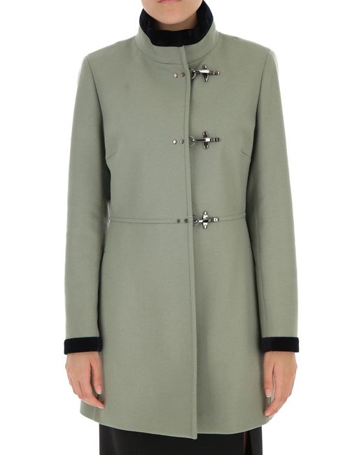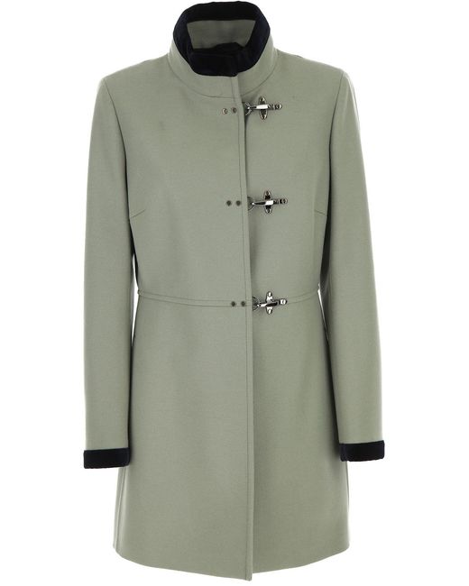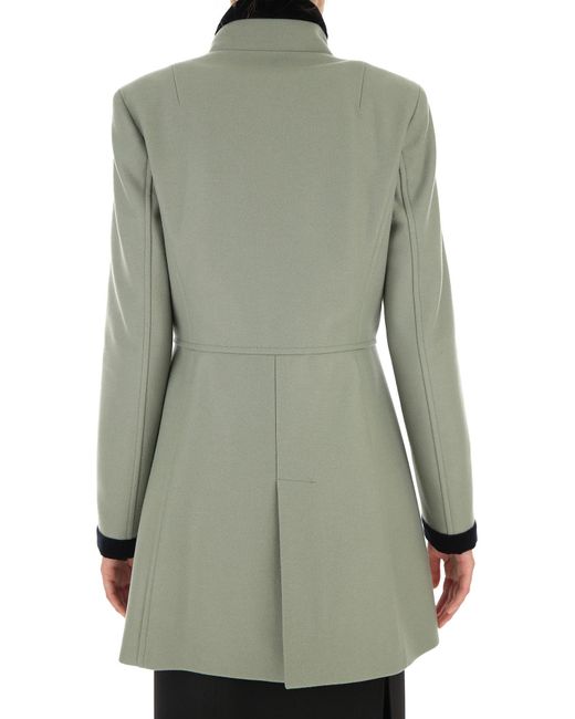 Salvia. Fall - Winter 2019/20.Made in Italy. Mangas Largas. Aplique de terciopelo. Cierre con Gancho. Totalmente en Lino. Dos Bolsillos Delanteros. Lana. Poliester. Cachemira. Ropa para Mujer: Fay Abrigo de Mujer. Gabardina. Trench. Abrigos. Color: verde