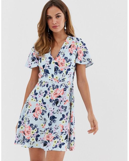 Minivestido de French Connection, Para tu día a día, Cuello en V, Manga corta, Diseño floral, Cierre con cremallera, Corte estándar, Selecciona tu talla habitual. French Connection viene creando excelentes colecciones a la vanguardia de la moda desde 1972, ofreciendo elegantes prendas sueltas, vestidos ultra tendencia y un estilo de confección basado en las líneas simples con un toque clásico único. Reduciendo la diferencia entre los atuendos de noche y de día, su estilo característico se ha ampliado con una gama de ropa de baño y accesorios que incluyen gafas de sol, relojes y calzado, con algunas líneas que se venden exclusivamente en ASOS. Aba. Color: azul