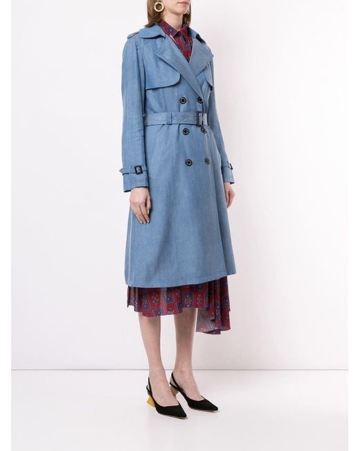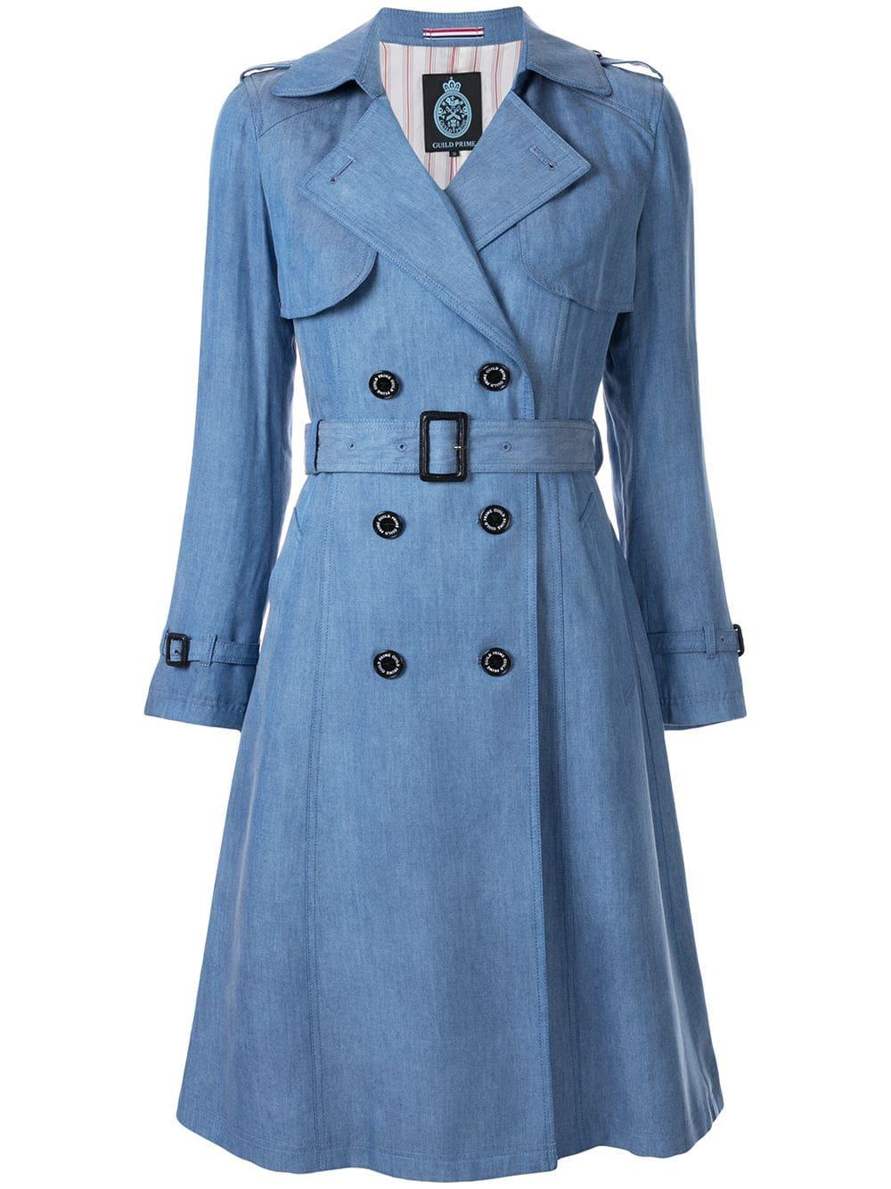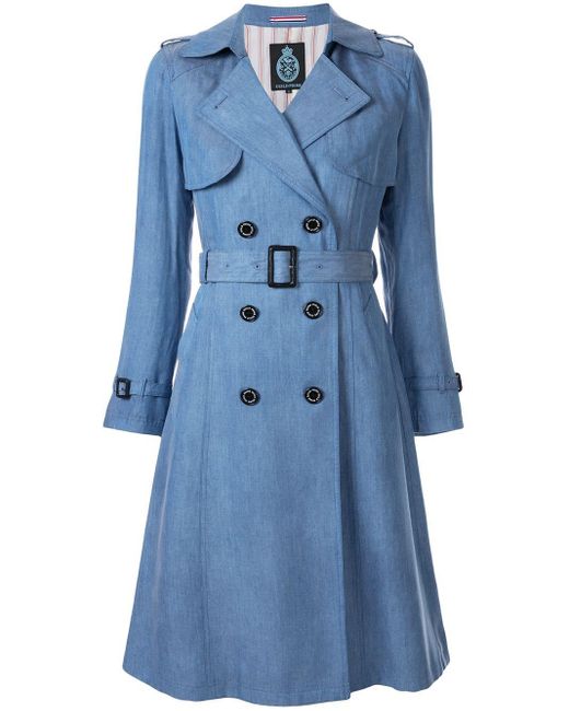 Gabardina con doble botonadura de mujer de color azul