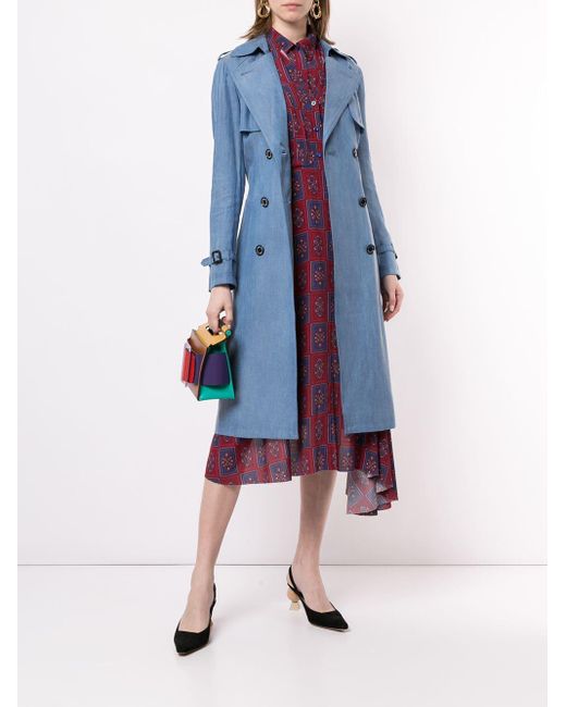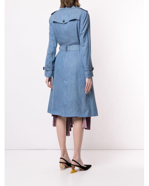 Gabardina con doble botonadura de color azul de Guild Prime con solapa ancha, cierre con botones en la parte delantera, cinturón incorporado, bolsillos laterales, manga larga, puños con correa y hebillas, abertura central en la parte posterior, forro estampado y diseño midi. POSITIVELY CONSCIOUS: este producto está hecho con un material reconocido como bueno para el planeta, por lo que puedes tener la seguridad de estar eligiendo positivamente. Material:. Color: azul