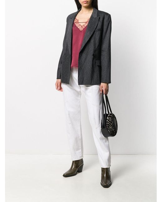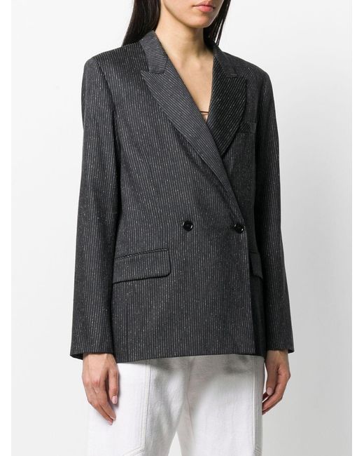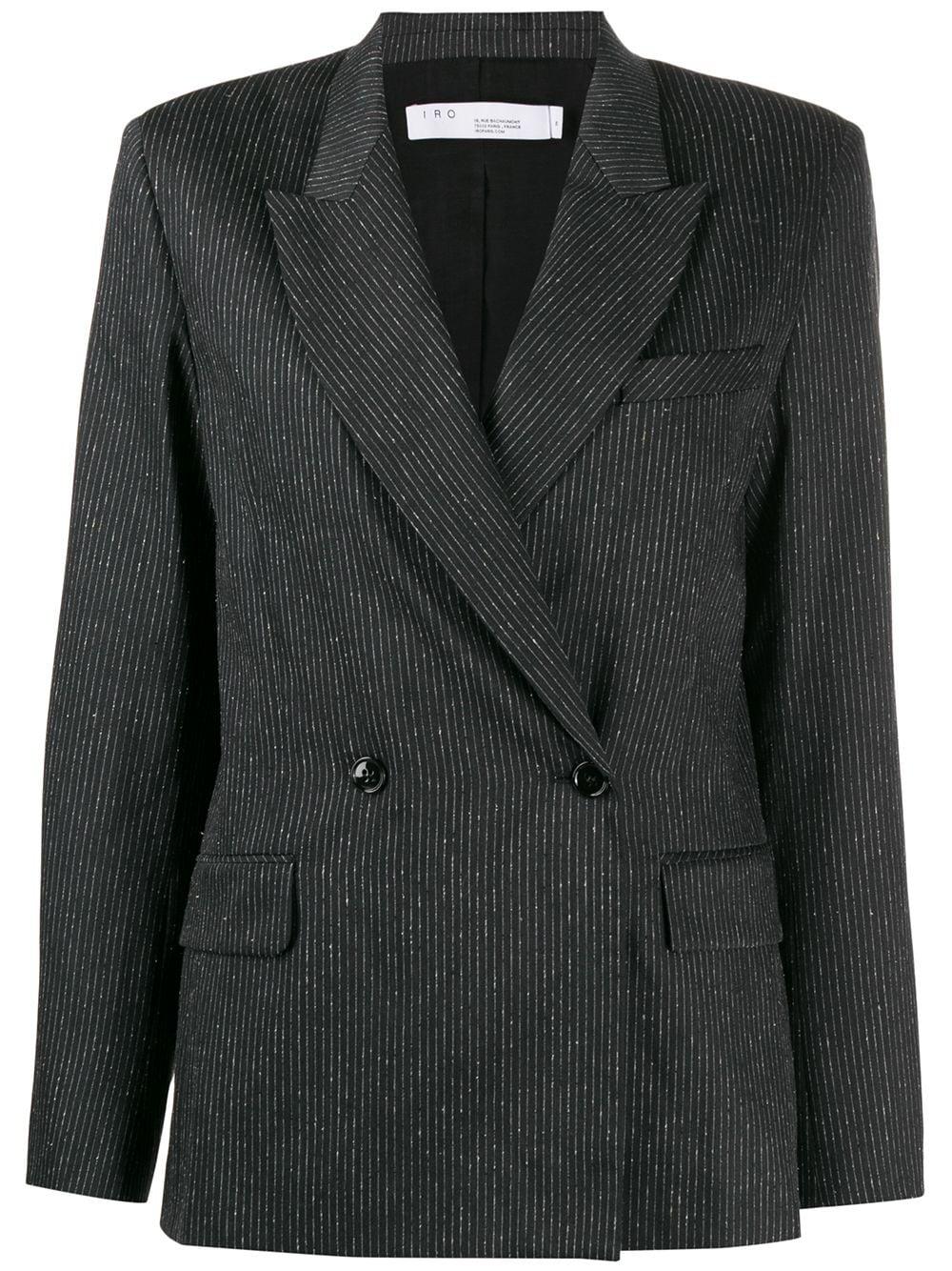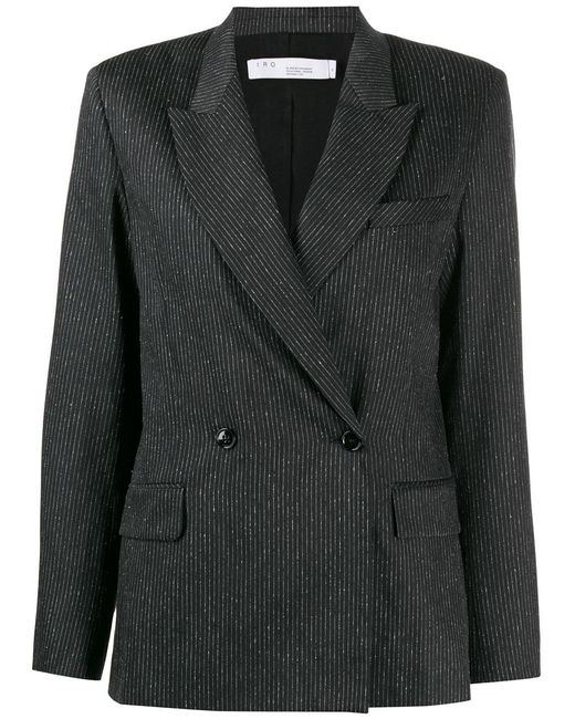 Blazer con solapas en pico y doble botonadura de Iro con cierre con botones en la parte delantera, solapas de pico, estampado a rayas diplomáticas, forro completo, puños con botón, abertura en la parte posterior y estilo corto. Material:seda/algodón/Viscosa/lana. Color: gris