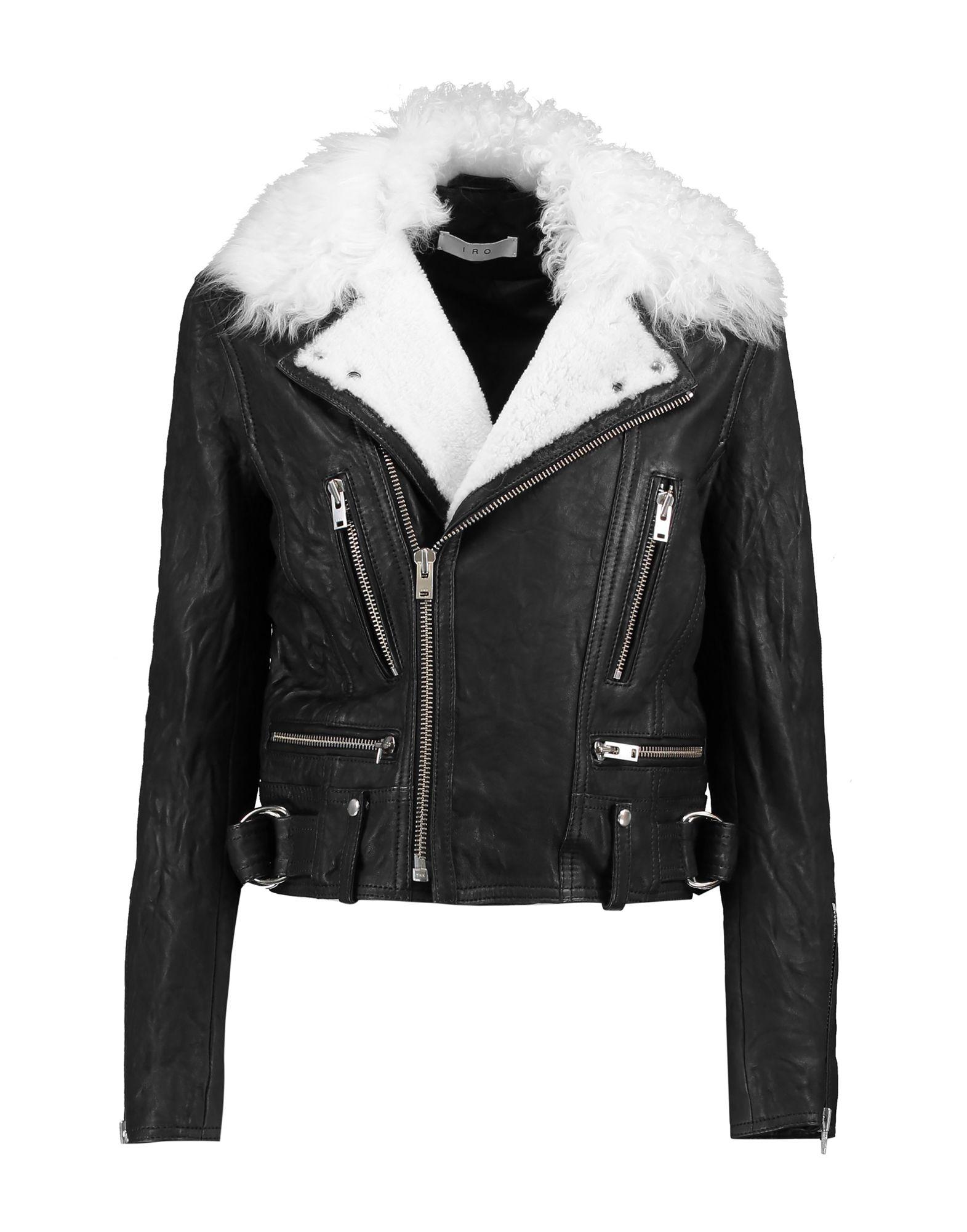 Cuero, cierre con correas, monocolor, abotonadura simple, cierre de cremallera, cuello clásico, multibolsillos , manga larga, interior forrado, composición con partes de origen animal pero no textil, modelo perfecto. 70% Lana de cordero, 30% Pelaje de cordero. Color: negro