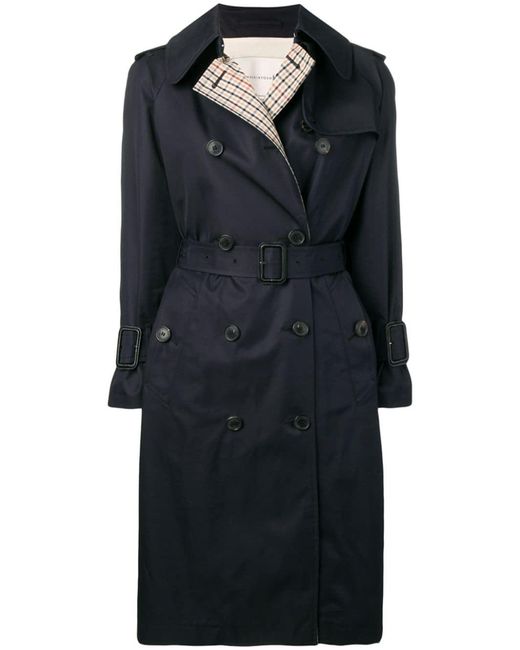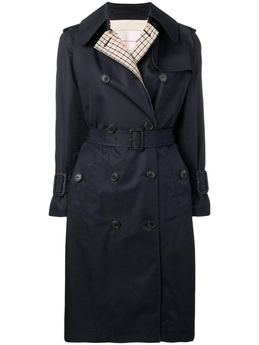 Gabardina con espalda con motivo de cuadros de Mackintosh con cuello oversize, cierre con doble botonadura, trabillas en los hombros, manga larga, puños con botón, cinturón, bolsillos laterales, abertura central en la parte posterior, corte largo y dobladillo recto. Material:poliéster/algodón/cupro/algodónpoliésterlana. Color: azul