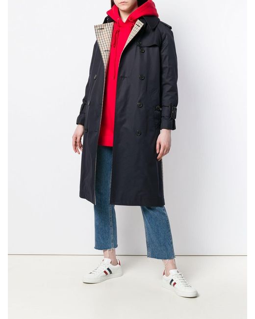 Gabardina con espalda con motivo de cuadros de mujer de color azul