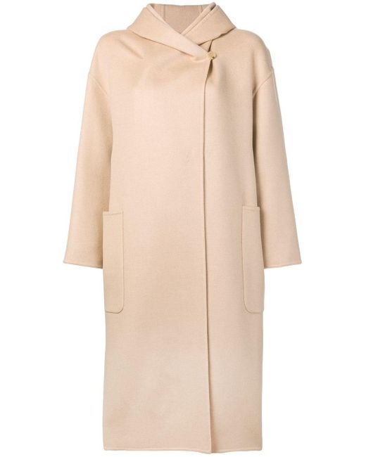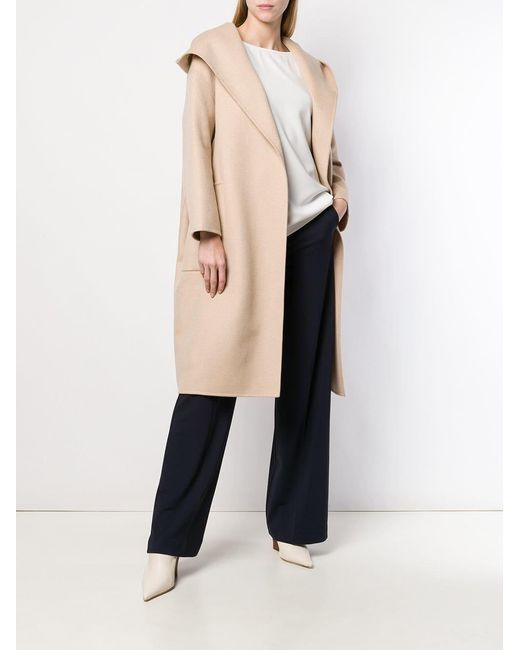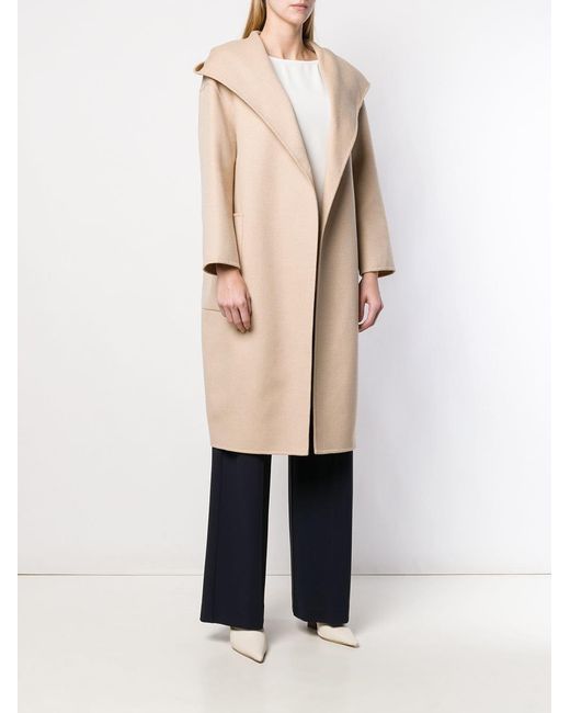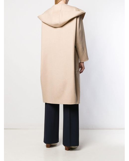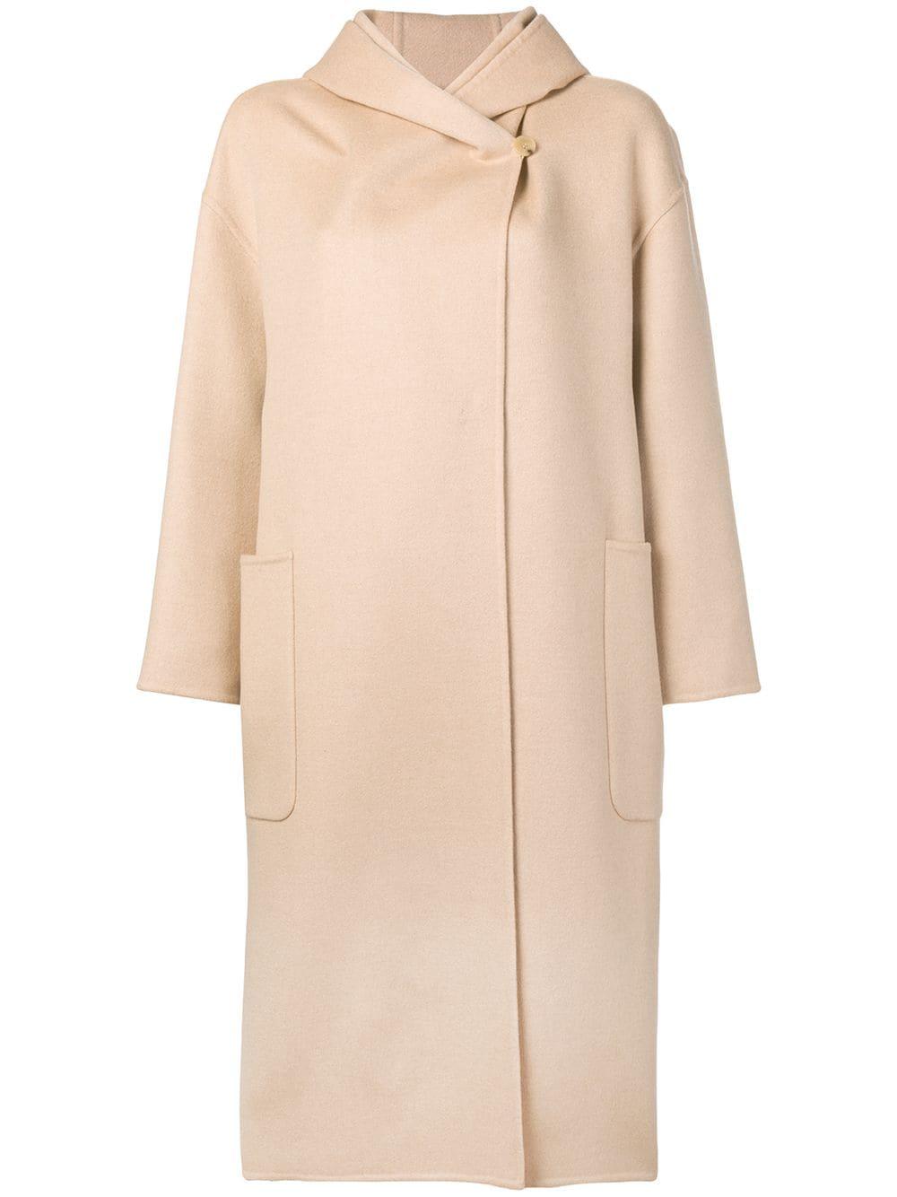 Abrigo con capucha de Max Mara con capucha, cierre descentrado con botones en el frente, bolsillos en la parte frontal, dobladillo recto, hombros caídos, manga larga y parche del logo en el interior. Material:lana virgen/pelo de camello. Color: neutro