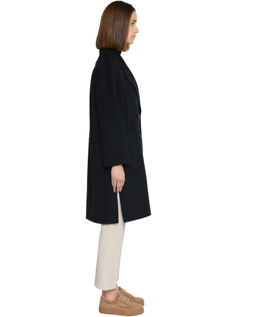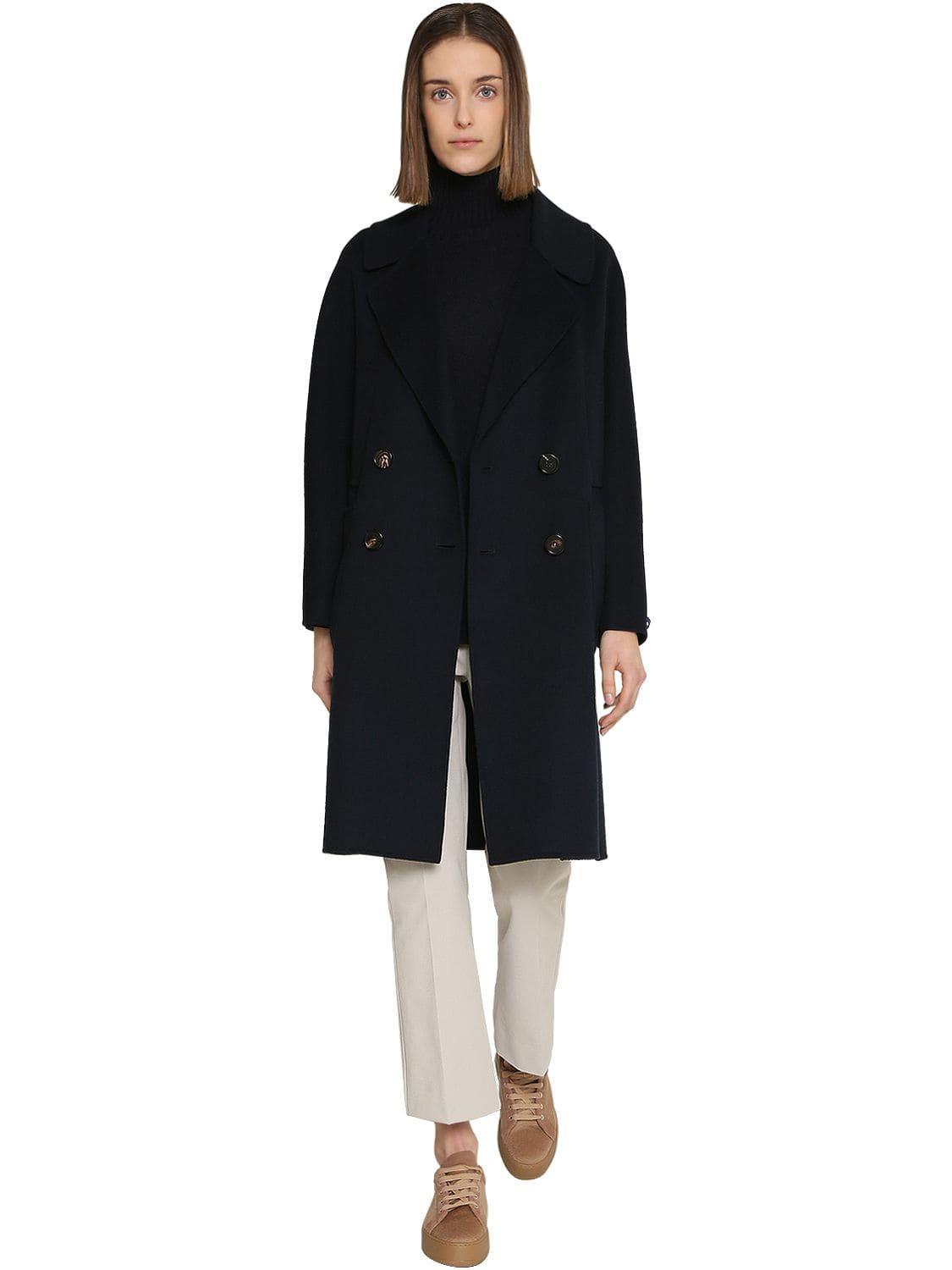 Solapas de pico con muesca. Cierre con botones en delantero. Aberturas laterales en los bajos. Dos bolsillos frontales. Dos bolsillos decorados en delantero. Sin forro. Talla muestra: 42. 100%wv. Color: azul