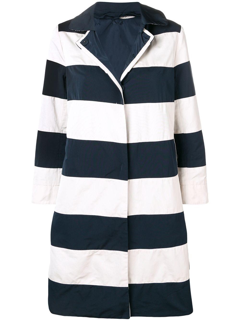 Abrigo de rayas con botones en mezcla de algodón de 'S Max Mara con cuello clásico, cierre con botones, manga larga, estilo corto y estampado a rayas. Material:algodón/poliéster. Color: azul