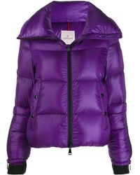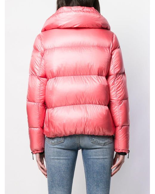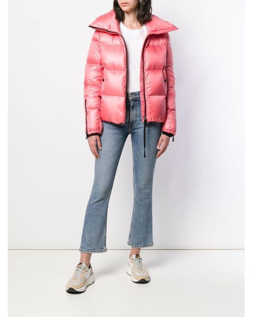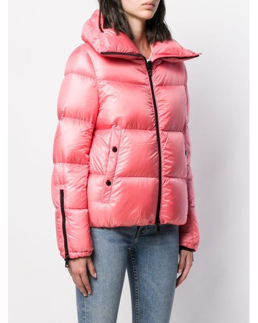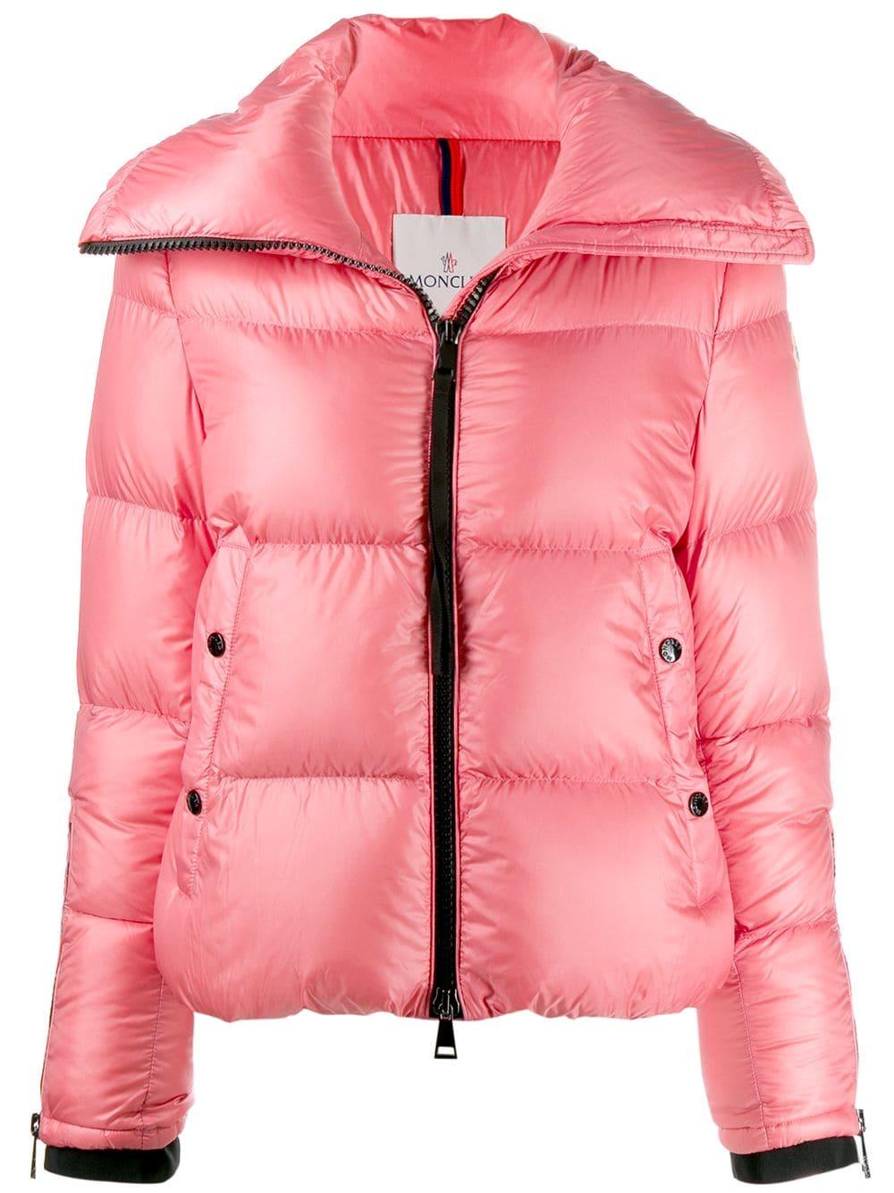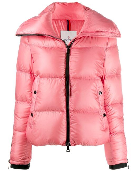 Chaqueta acolchada Bandama de color rosa de Moncler con cuello oversize, cierre con cremallera en la parte delantera, manga larga, logo en el lado izquierdo, puños con cremallera, bolsillos laterales, dobladillo recto y diseño corto. Material:poliamidaplumas de ganso/plumas/poliamida. Color: rosa