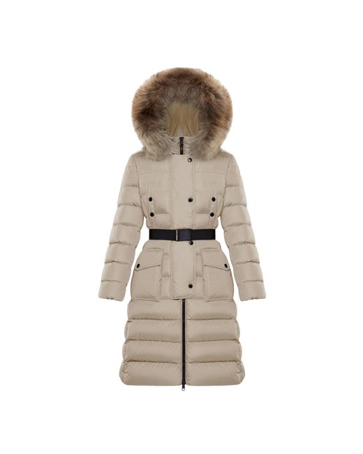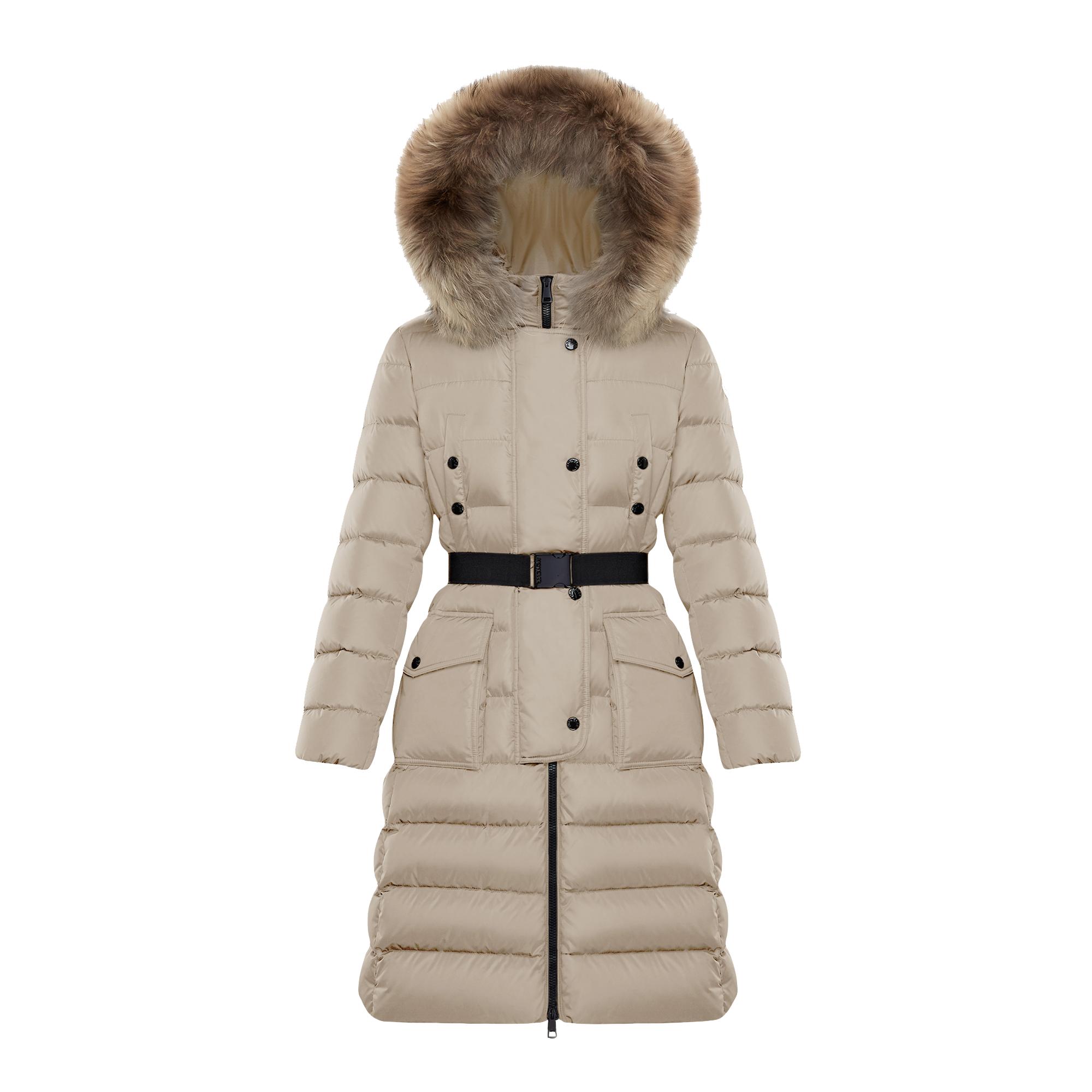 Referencias a la moda deportiva masculina y detalles de uniformes militares se mezclan en una prenda con elaboración de alta costura. No faltan los elementos de alta tecnología fruto de la investigación tecnológica de Moncler que en el tejido diseñan una geometría elegante, con una cintura que acentúa la feminidad de la figura. De estilo urbano y chic, puede llevarse con el pelo de la capucha. Tela técnica. Aplicación desmontable. Cinturón. Cuello alto. Puños elásticos. Cierre con cremallera y automáticos. Cuatro bolsillos. Interior en pluma de oca. 100% Poliamida, Mapache. Color: neutro