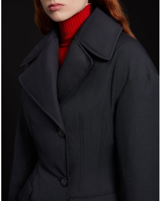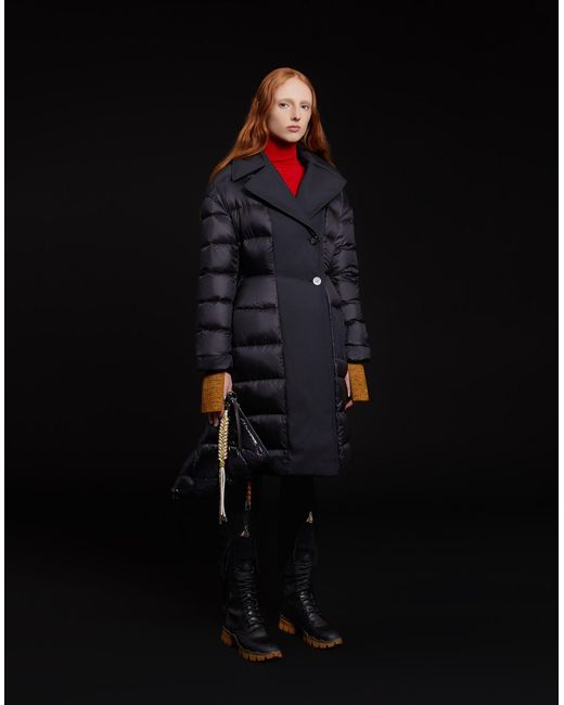 Con Mezen, abrigo largo de mujer de 2 Moncler 1952, colección n° 2 del proyecto Moncler Genius, los reflectores destacan la silueta. El modelo reversible, realizado por un lado con tejido técnico de mezcla de lana y por el otro de nailon ligero acolchado con pespunteado boudin, remarca la cintura con sinuosidad gracias a un diseño que recuerda la costura de los Años Cincuenta adaptada al estilo moderno. Logotipo. Lona. Cuello con solapas. Manga larga. Puños elásticos. Cierre con botones. Cuatro bolsillos. Interior en pluma de oca. Dos bolsillos internos. Abertura delantera. 60% Poliéster, 40% Lana Virgen. Color: negro