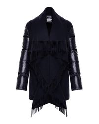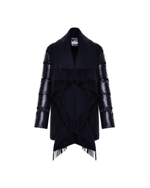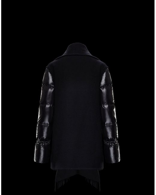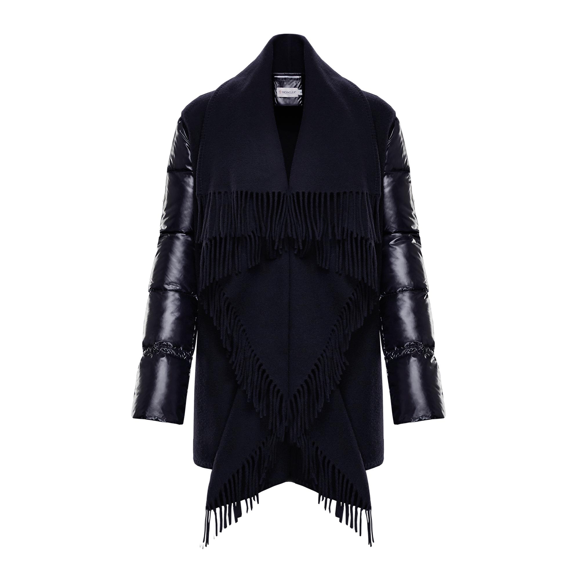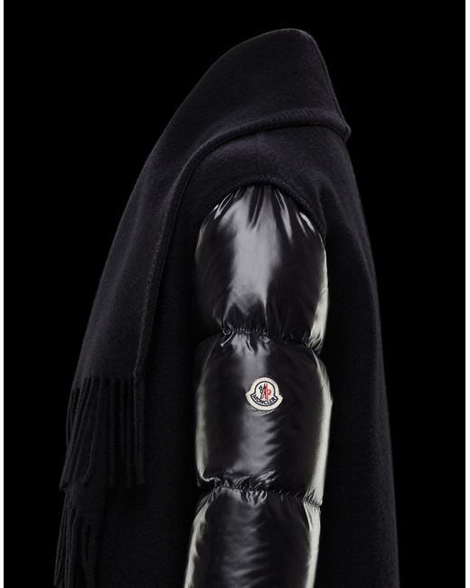 Combina el nailon brillante acolchado de pluma con la lana en un poncho firmado por Moncler. Para llevar en esos días de mejor tiempo o como complemento de otras prendas para una dosis de calor adicional. Manga larga. Paño. Tela técnica. Logotipo. Relleno parcial de pluma auténtica. Flecos. Cuello con solapas. 100% Poliamida, Lana. Color: negro