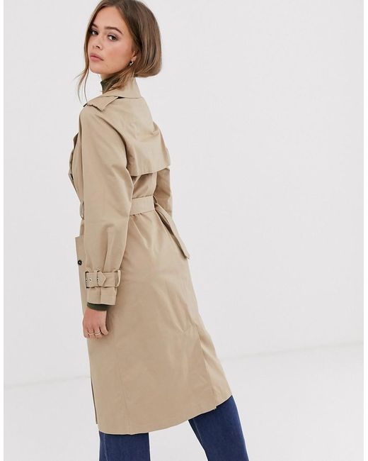 Gabardina color piedra con lazada a la cintura de mujer de color neutro