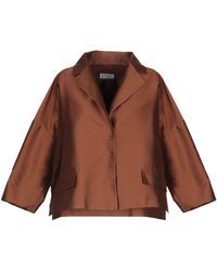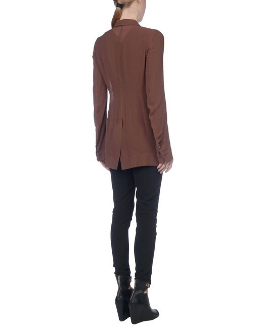 Crepé. Sin aplicaciones. Monocolor básico. Multibolsillos. 1 botón. Cuello con solapas. Abotonadura simple. Manga larga. Interior sin forro. Tallaje pequeño. 100% Seda, Corojo. Color: marrón