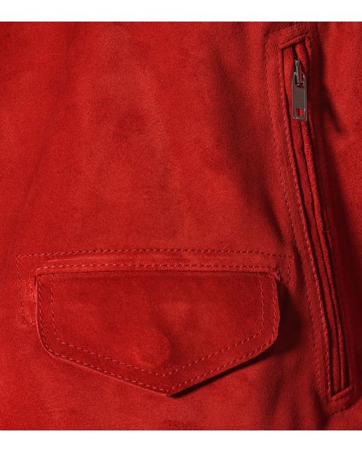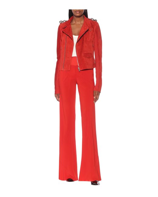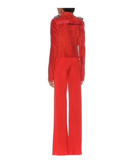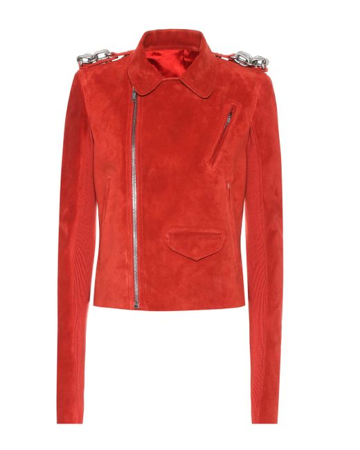 Rick Owens aplica un toque industrial a las prendas biker para dar vida a esta chaqueta de gamuza en color rojo. Color: rojo