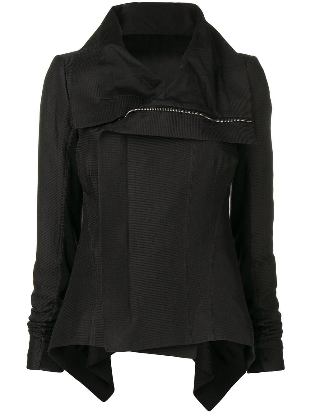 Chaqueta estructurada de color negro de Rick Owens. Material:cupro/seda/algodón/lana virgenalgodónsedaViscosa. Color: negro