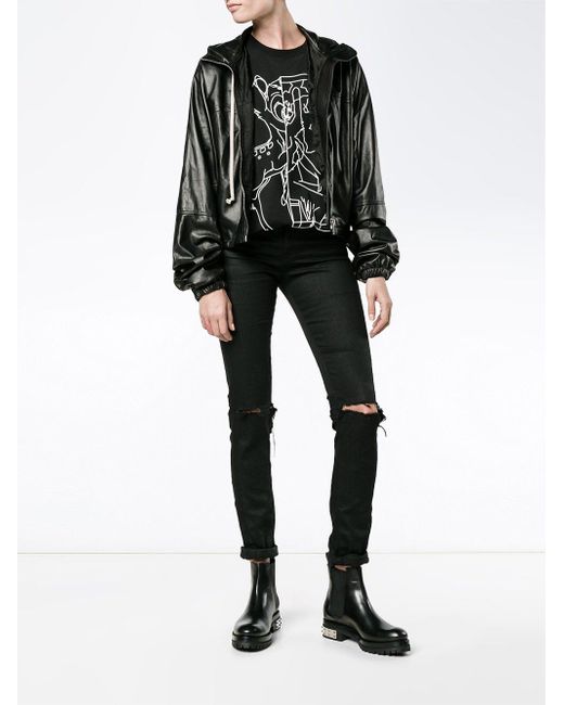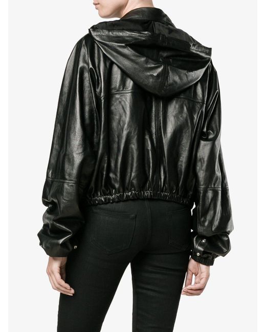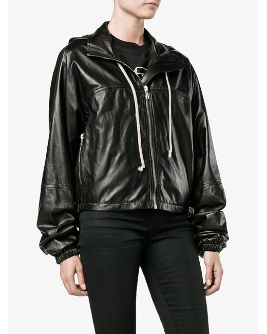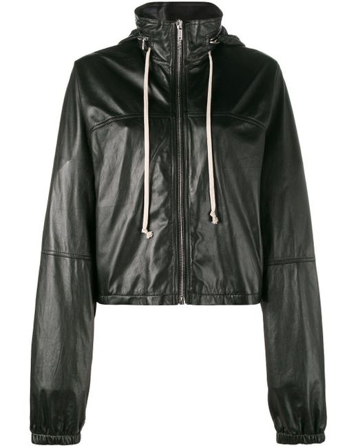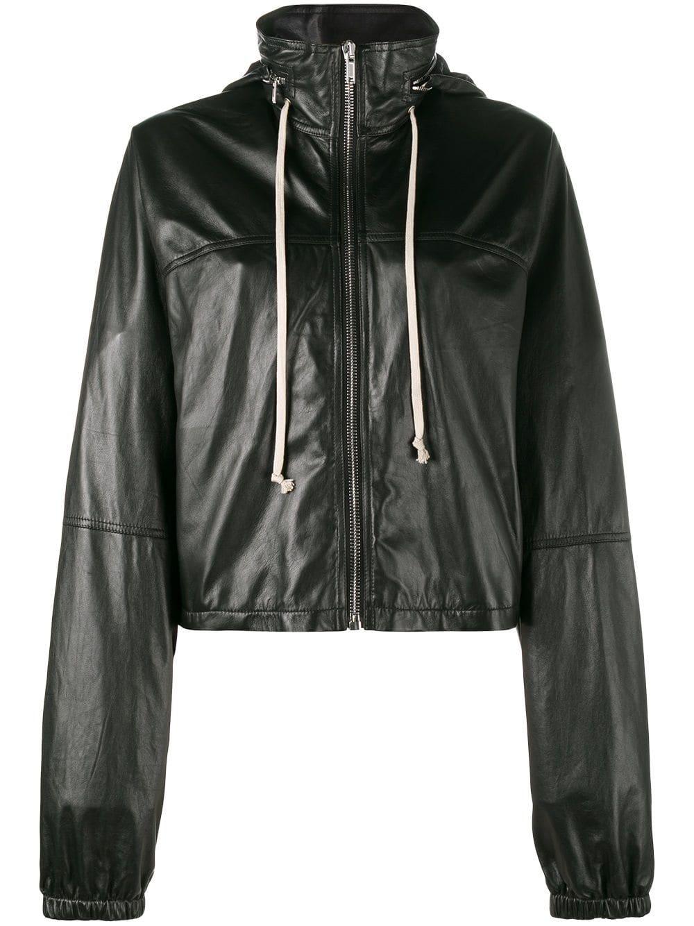 Cortavientos con diseño corto en piel negro de Rick Owens. Material:cupro/cuero/algodón.