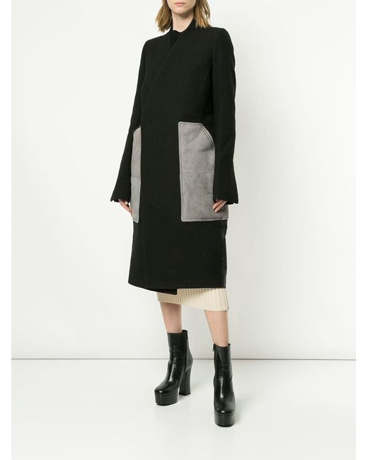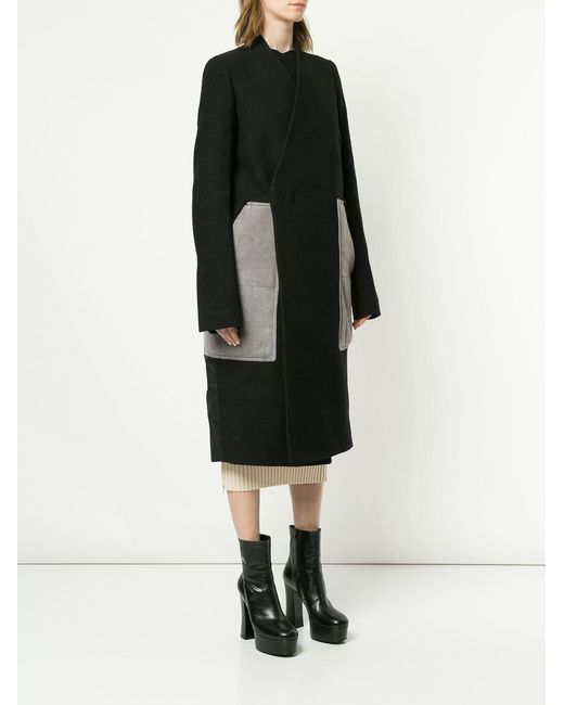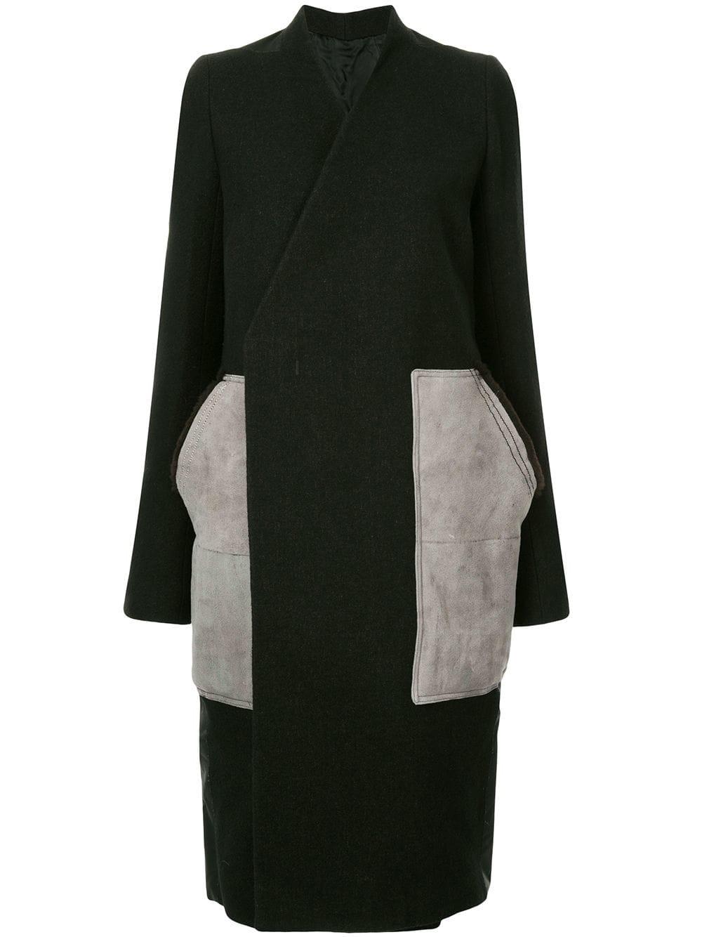 Chaqueta con parche en lana virgen de color marrón de Rick Owens. Material:nylon/lana virgen/lino. Color: marrón