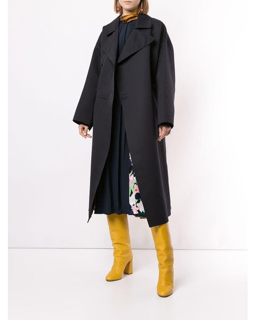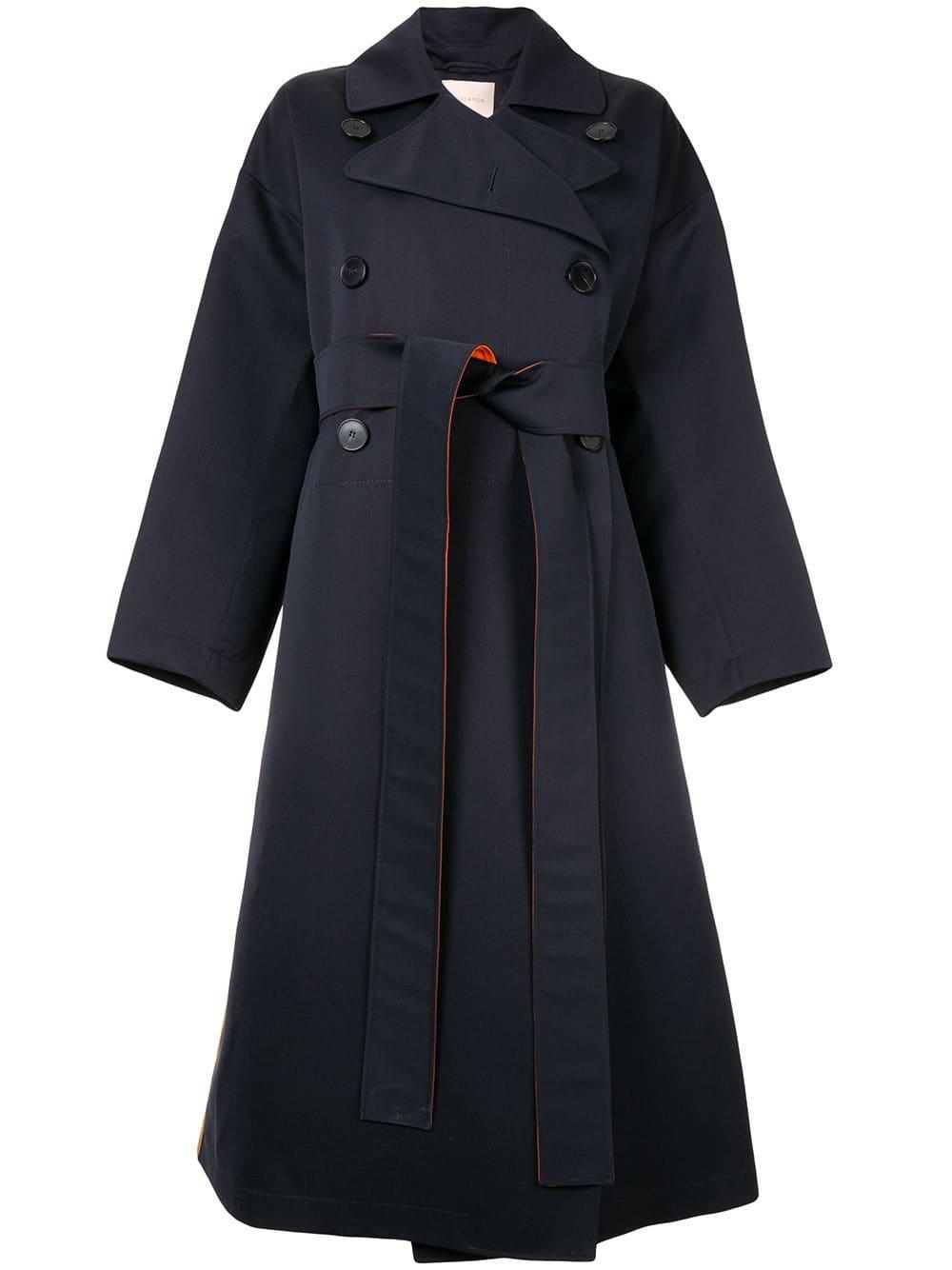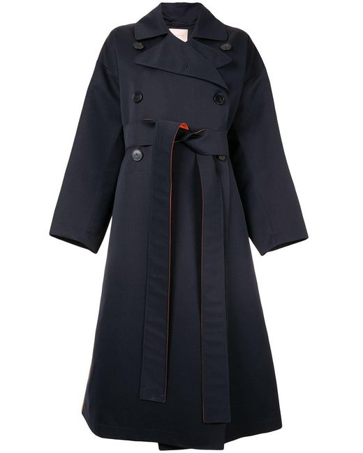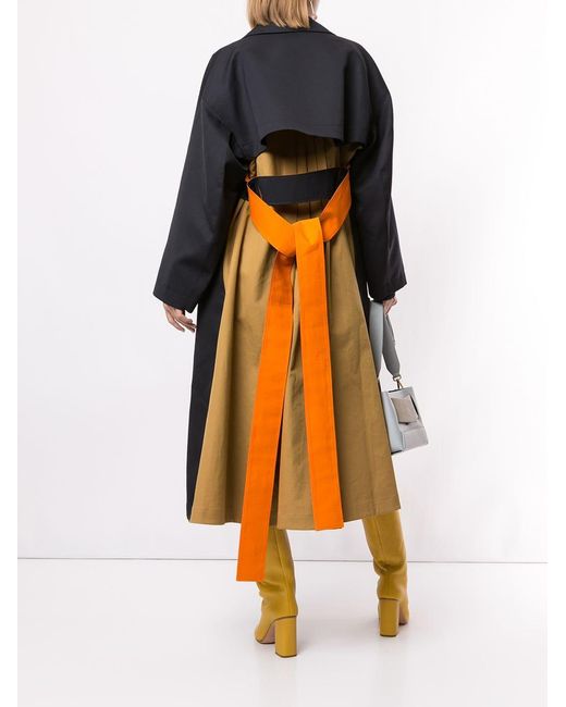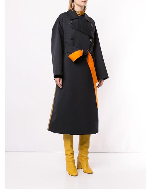 Gabardina con diseño colour block en lana de Roksanda con solapa ancha, hombros caídos, manga larga, cierre con doble botonadura, detalles de pliegues y bolsillos en la parte frontal. Material:seda/algodón/lana. Color: azul