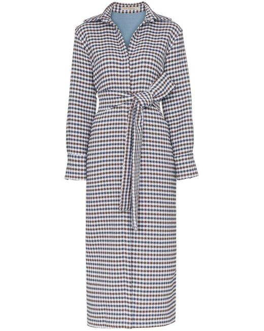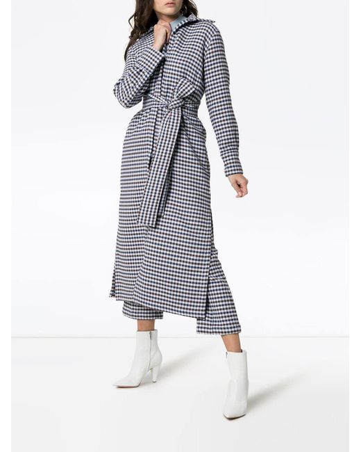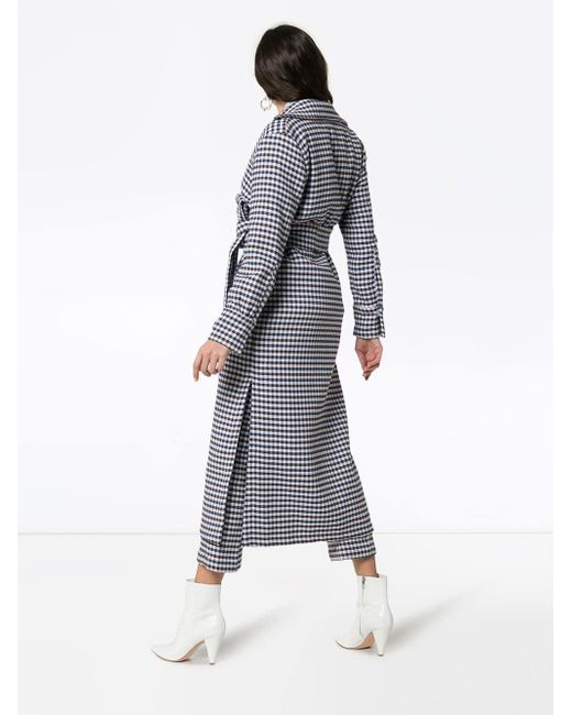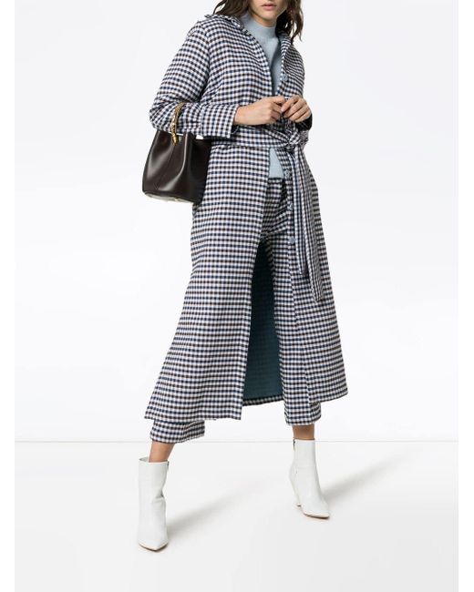 Gabardina a cuadros Cardota en mezcla de algodón de color azul de Silvia Tcherassi con cuello con doblez, cintura con lazo y corte largo. Material:poliamida/poliéster/algodón. Color: azul
