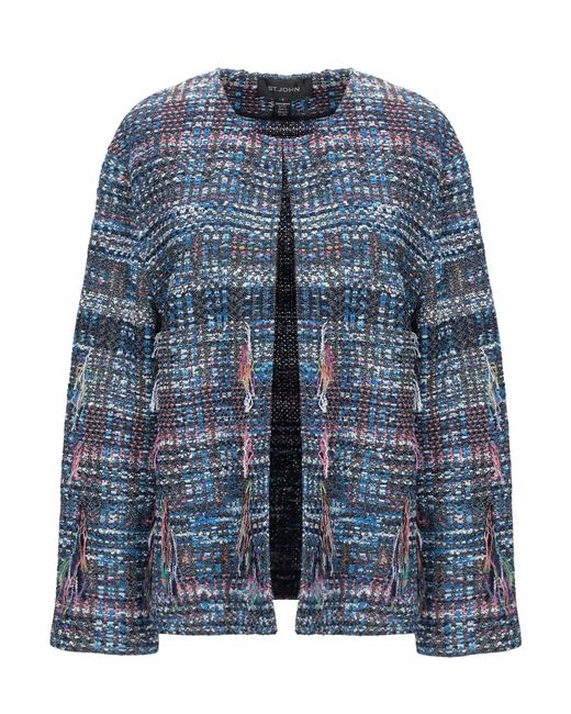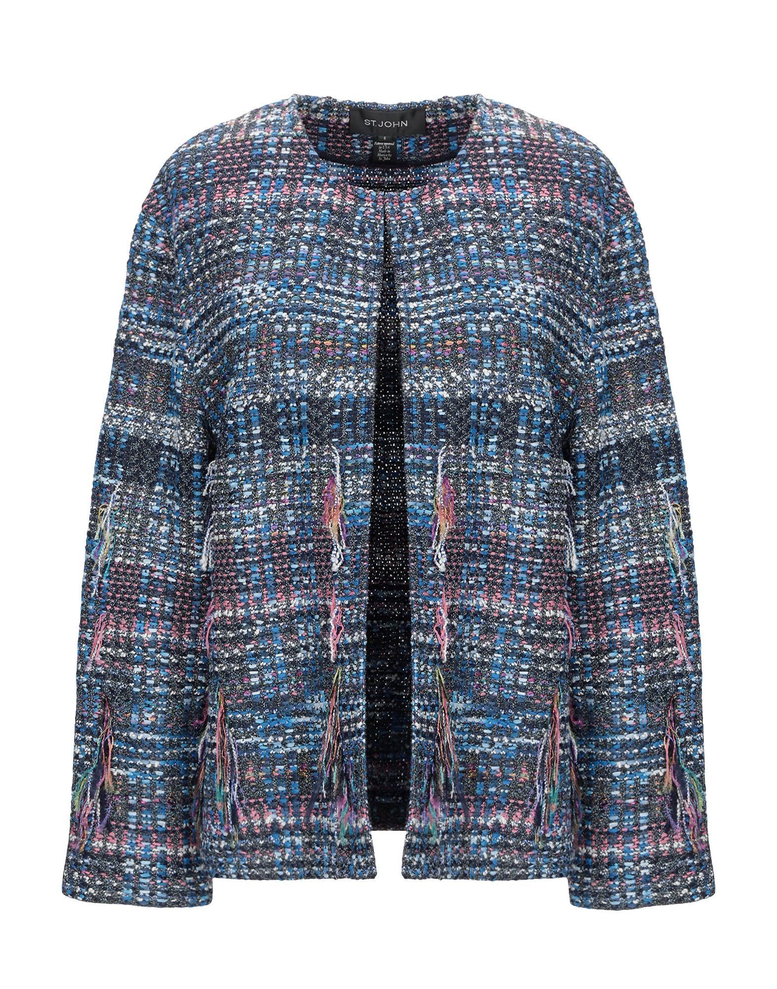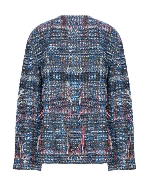 Tweed, flecos, estampado multicolor, sin bolsillo, escote profundo, abotonadura simple, manga larga, interior sin forro. 70% Poliamida, 16% Rayón, 10% Algodón, 2% Poliéster, 2% Lana. Color: azul