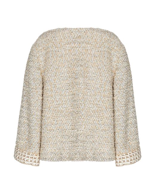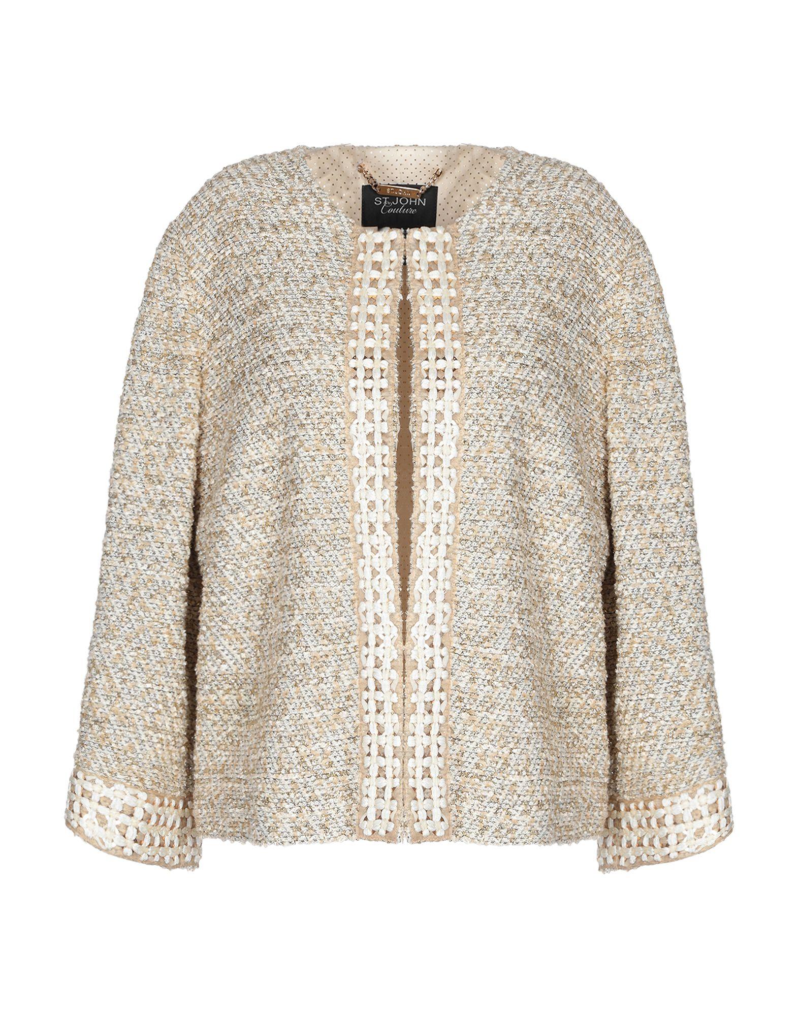 Tweed, lamé, sin aplicaciones, estampado bicolor, sin bolsillo, cierre con corchetes, cuello redondo, abotonadura simple, manga larga, interior forrado. 33% Lana, 32% Poliéster, 16% Rayón, 12% Algodón, 7% Fibra metálica. Color: multicolor