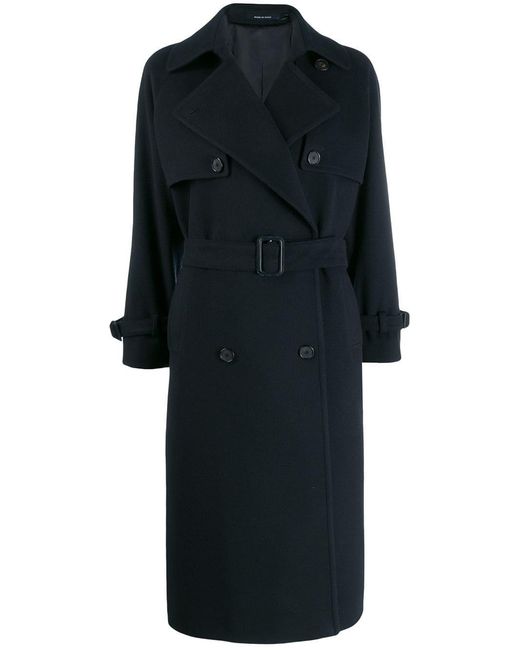 Gabardina oversize en lana de Tagliatore con solapa ancha, cierre con doble botonadura, manga larga, puños con correa y hebillas, bolsillos laterales y diseño largo. Material:cupro/cashmere/lana. Color: azul