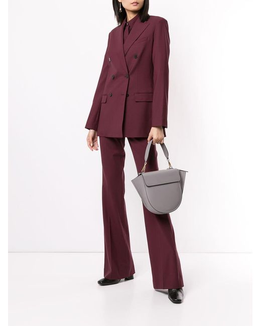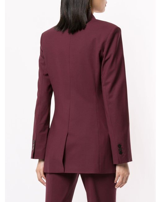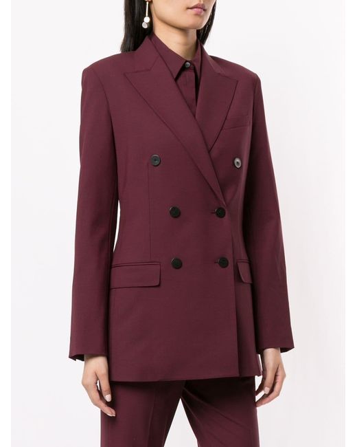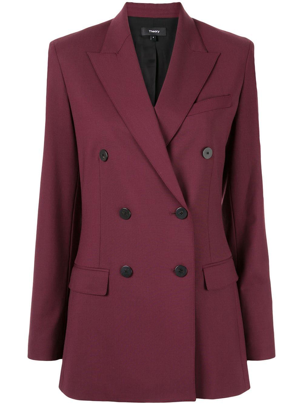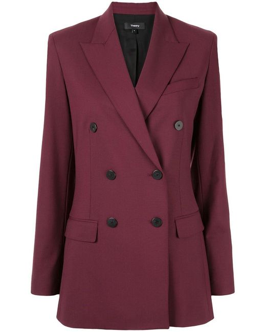 Blazer con doble botonadura de Theory con hombros estructurados, solapas de pico, bolsillo en el pecho, cierre con doble botonadura, manga larga, bolsillos con solapa en el frente, puños con botón y abertura en la parte posterior. Material:spandex/elastano/lana/cupro. Color: rojo