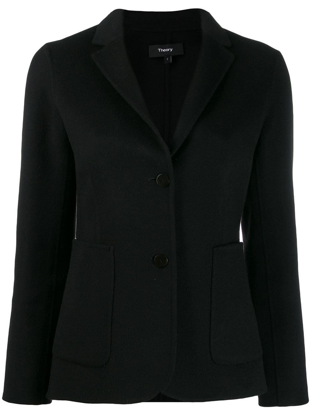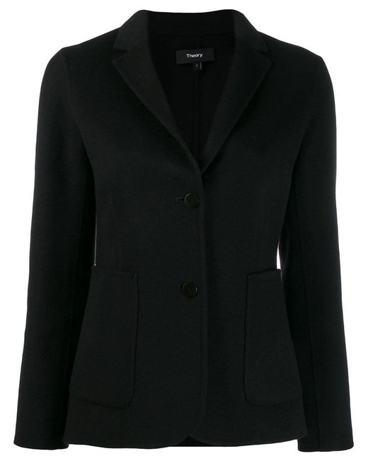 Blazer entallado en lana de color negro de Theory con solapa clásica, cierre con botones, manga larga, corte slim y bolsillos laterales. Material:lana/cashmere. Color: negro