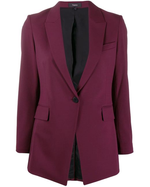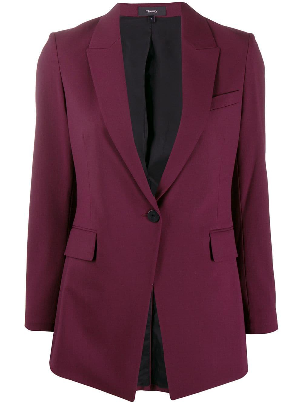 Blazer Etiennette en lana de Theory con solapa clásica, cuello en V, cierre con botones en la parte delantera, bolsillos con solapa laterales, manga larga, puños con botón y dobladillo recto. Material:spandex/elastano/cupro/lana. Color: rojo