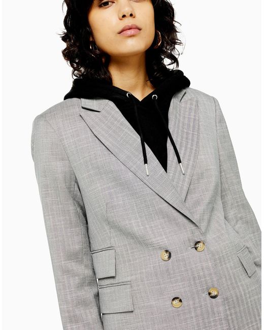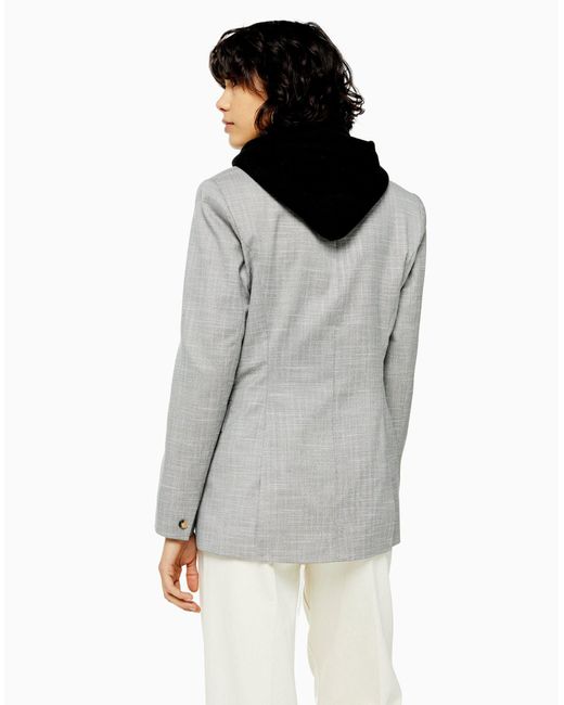 Tejido, pinzas , estampado bicolor, multibolsillos , bolsillo con tapa, cierre con botones, cuello con solapas , cierre cruzado, manga larga, interior forrado. 82% Poliéster, 17% Viscosa, 1% Elastán. Color: gris