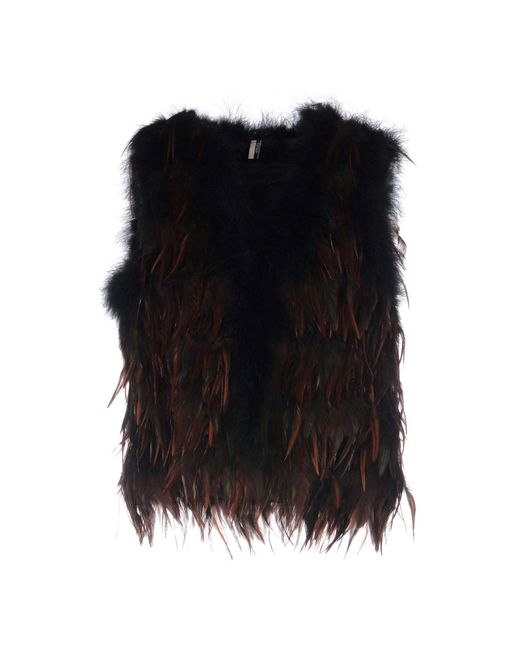 Sin aplicaciones, monocolor, abotonadura simple, cierre con corchetes, escote en v, sin bolsillo, sin mangas , interior forrado, tejido, prendas de abrigo. 90% Plumas de gallina, 10% Plumas de pavo. Color: marrón