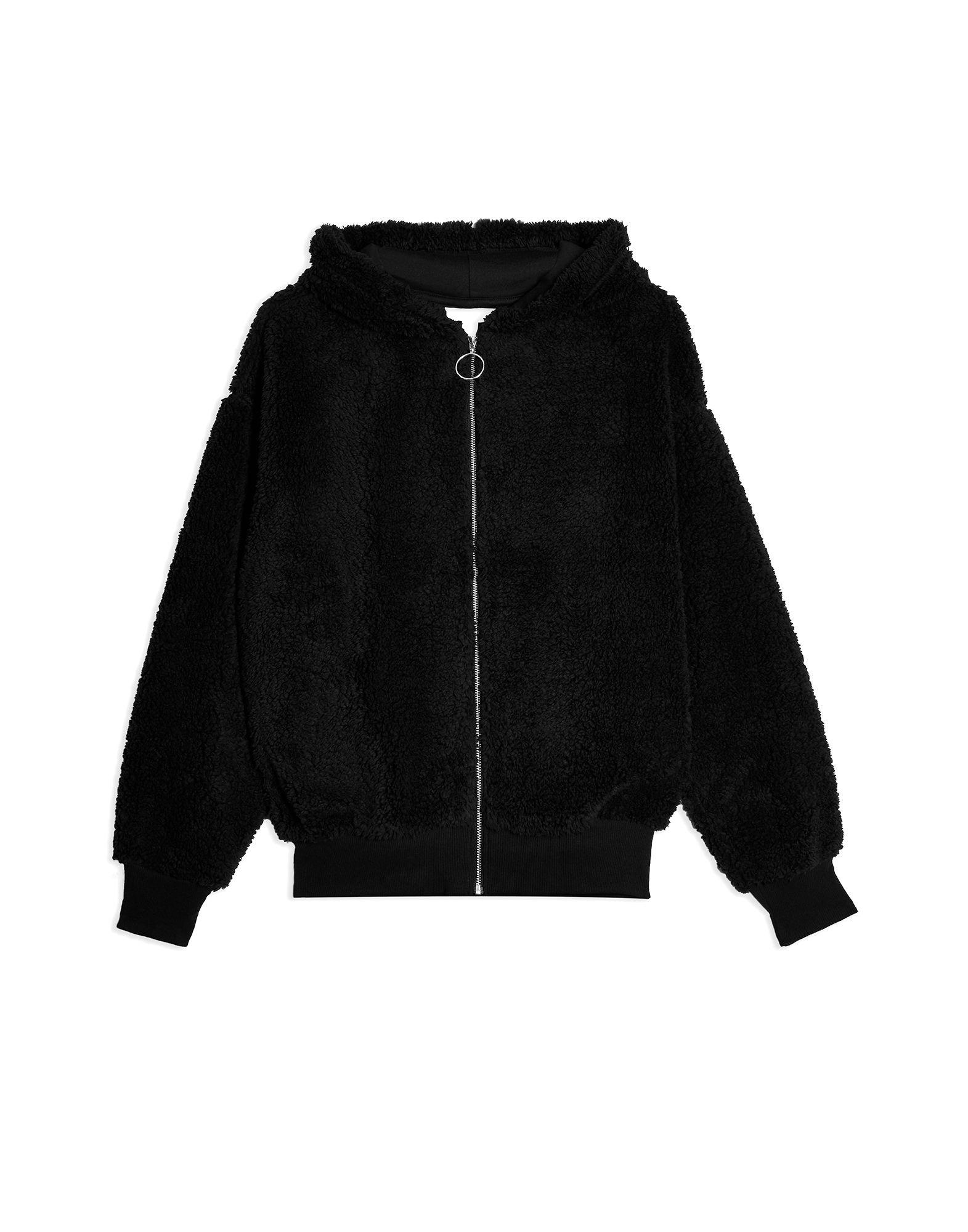 Forro polar, sin aplicaciones, monocolor básico, cuello con capucha, manga larga, cierre delantero, cierre de cremallera. 100% Poliéster. Color: negro