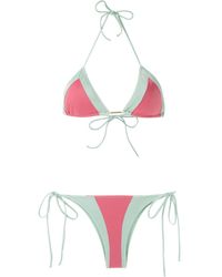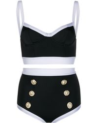 Bikini de dos tonos de Versace con escote halter. La ropa de baño debe ser probada sobre tus prendas. Material:poliamida/poliamida/spandex/elastanospandex/elastano. Color: azul