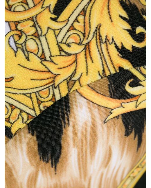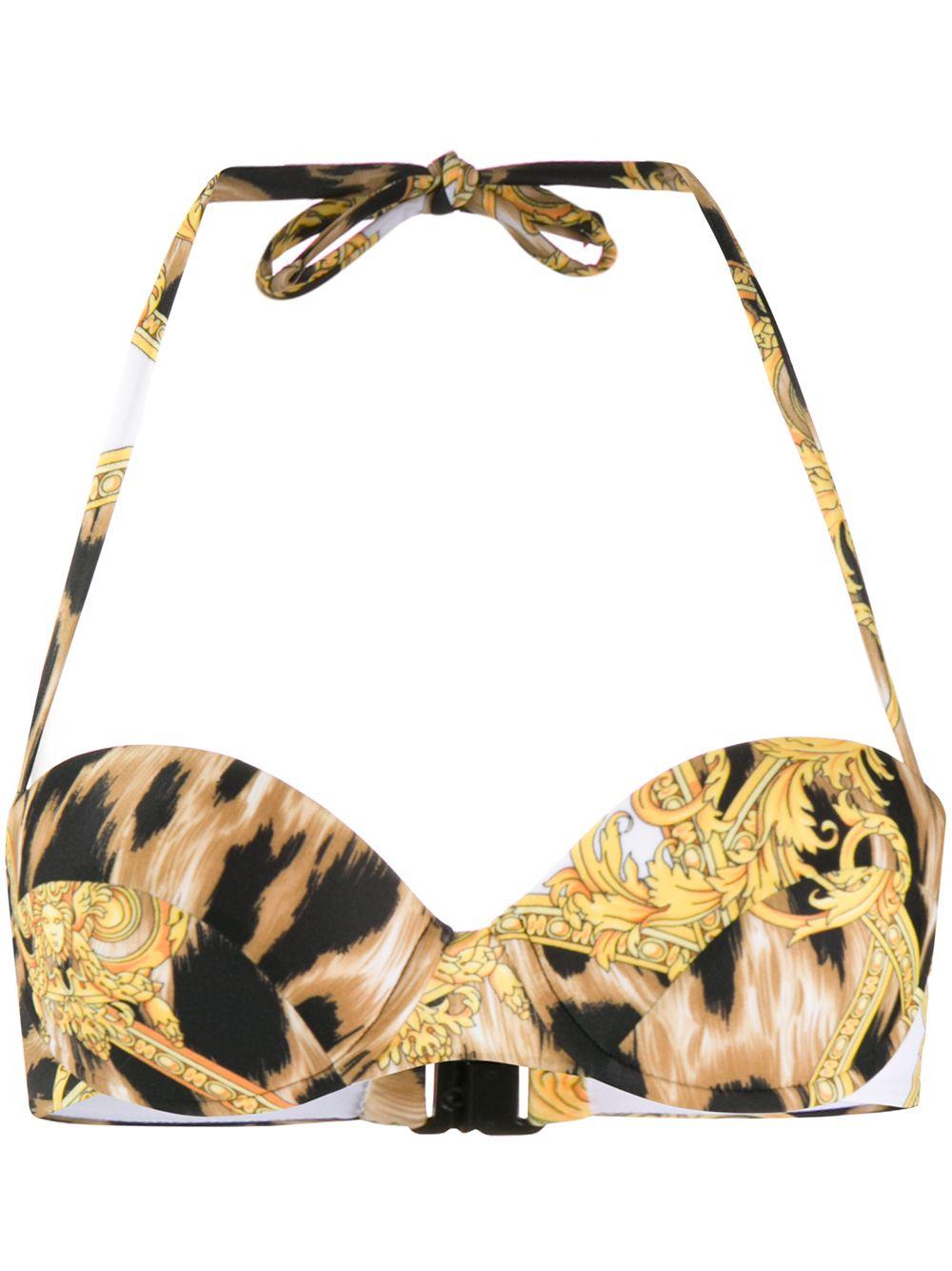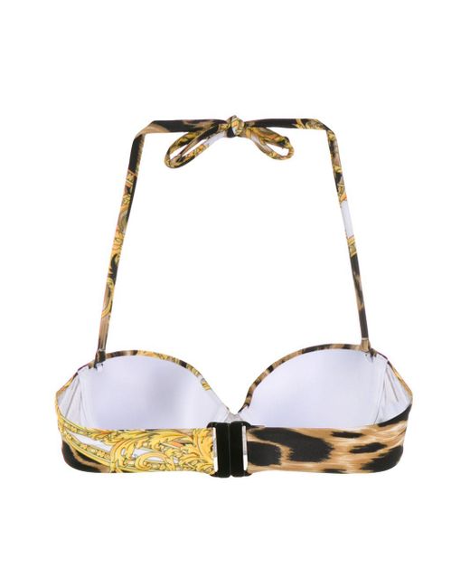 Top de bikini con estampado Barocco de mujer de color amarillo